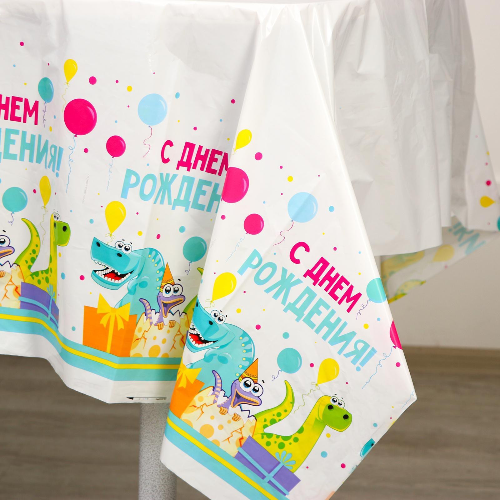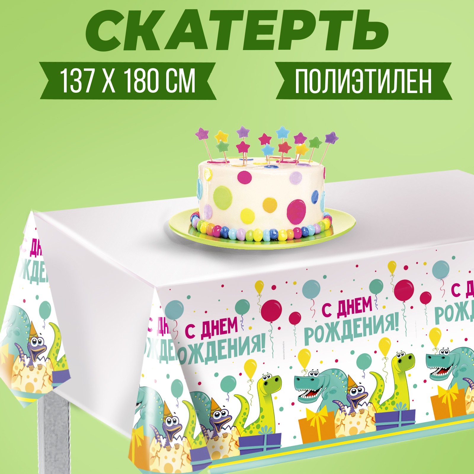 Скатерть одноразовая «с днём рождения», дино, 180 х 137 см