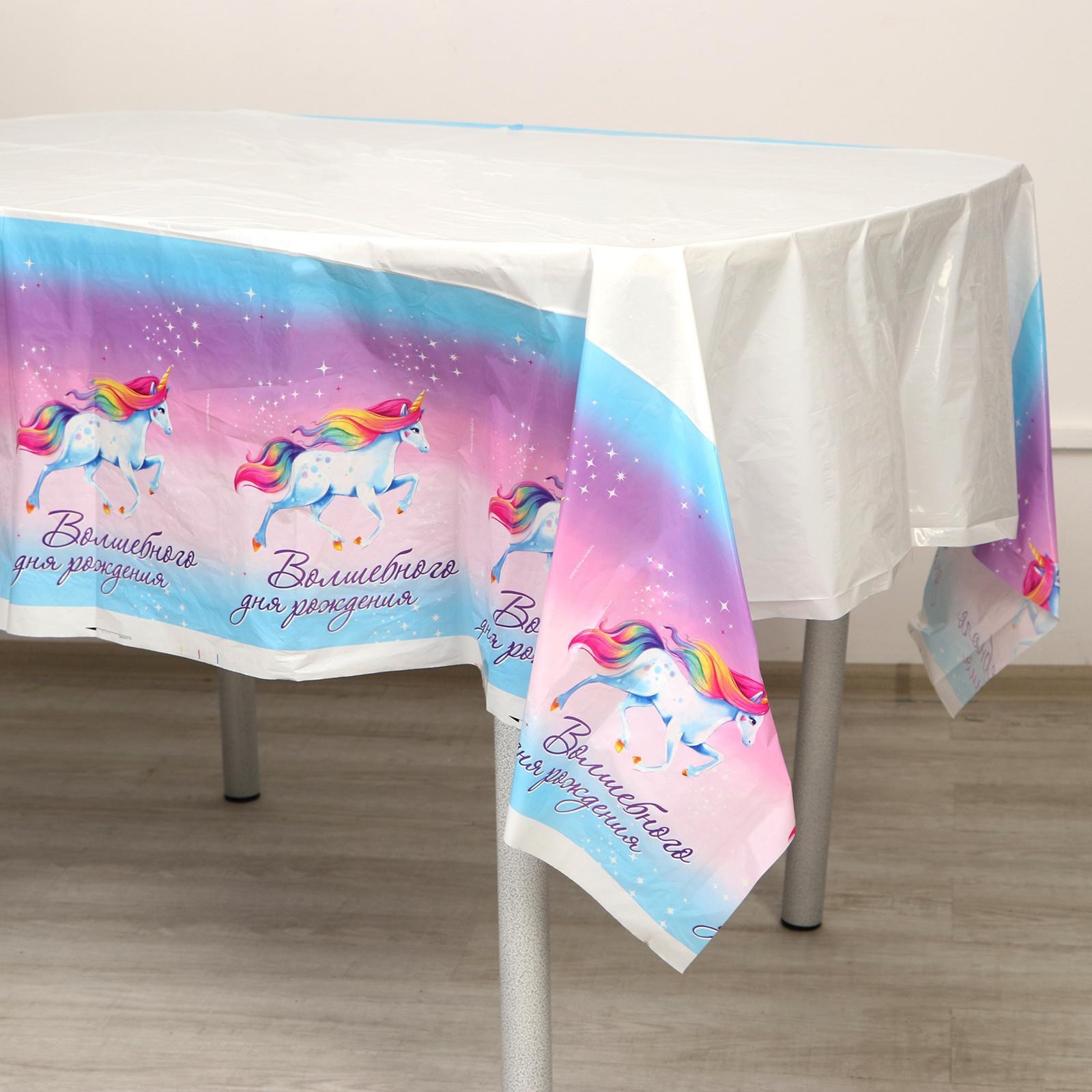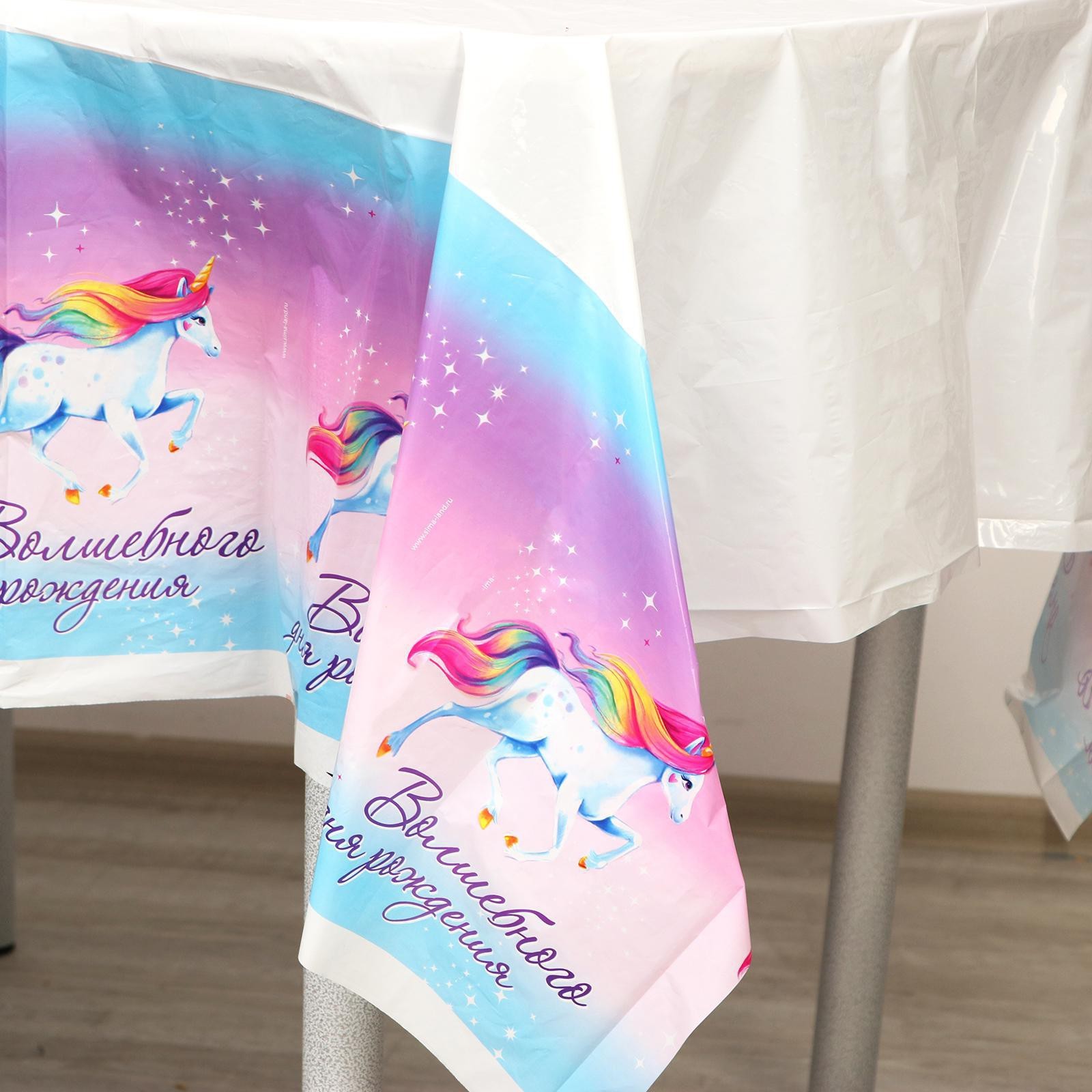 Скатерть одноразовая «волшебного дня рождения», единорог, 180 х 137 см