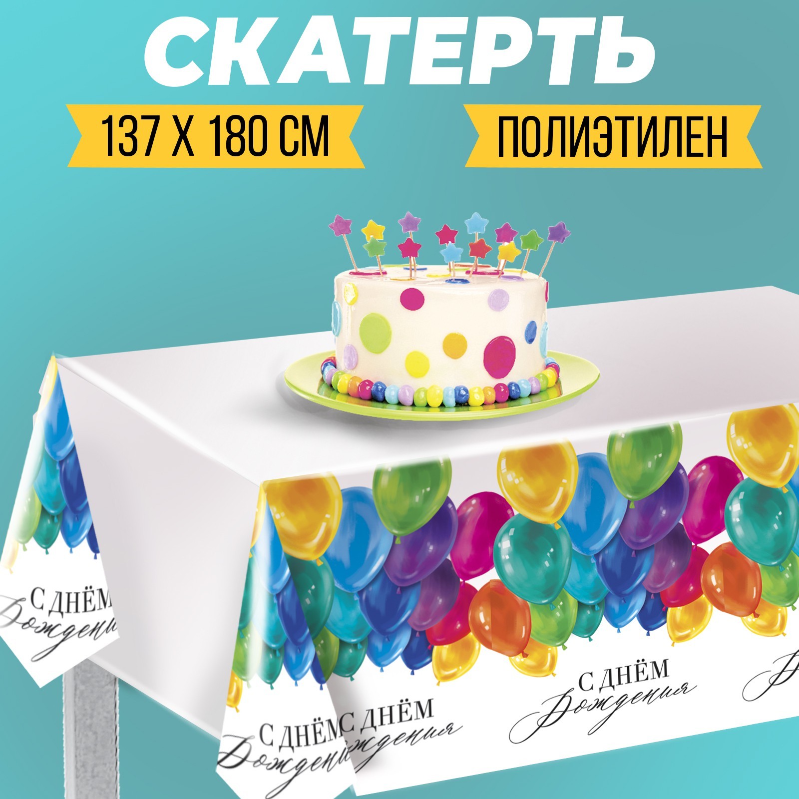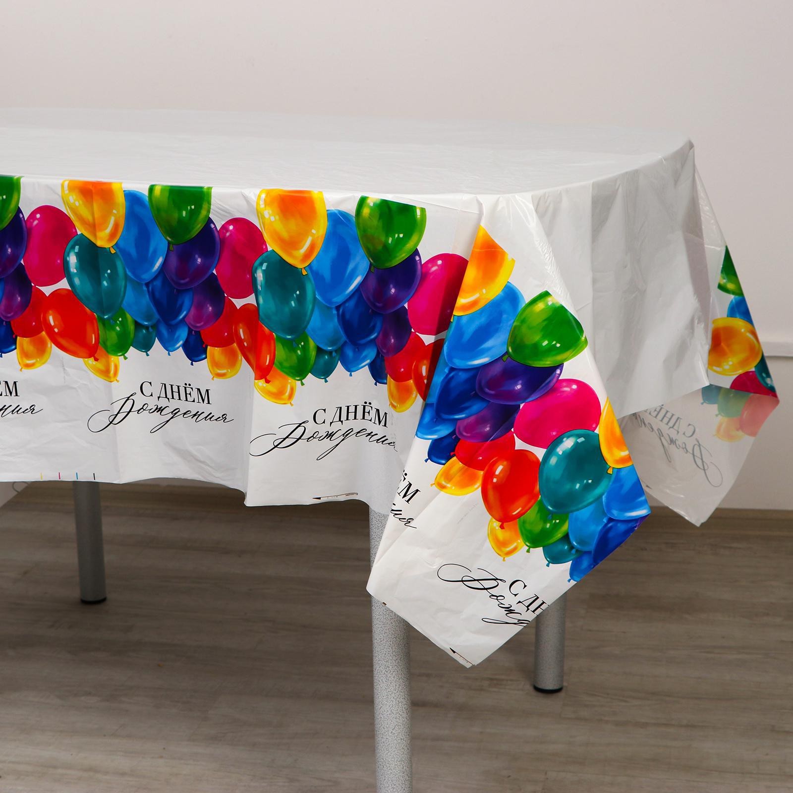 Скатерть одноразовая «с днём рождения», шарики 180 х 137 см