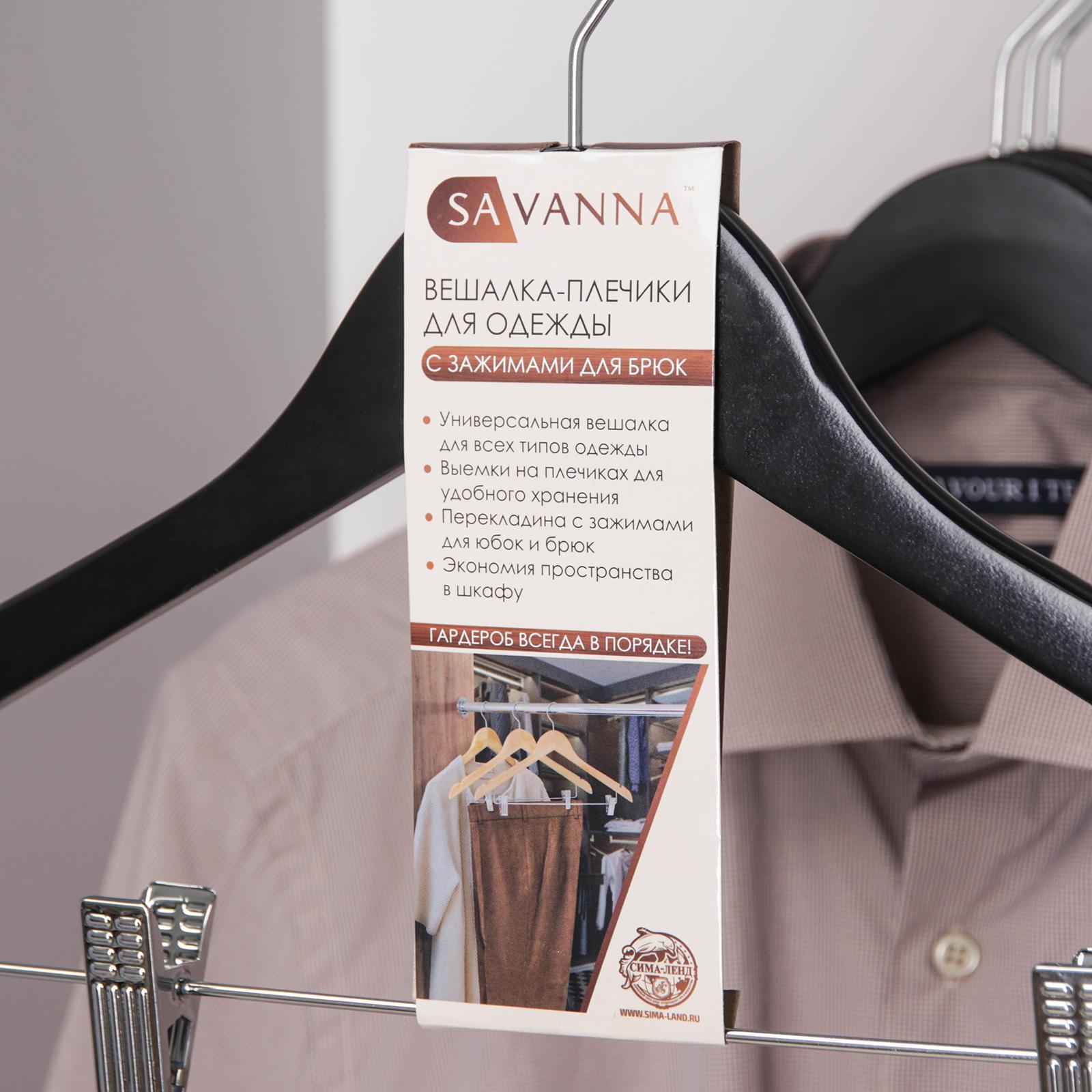 Плечики с зажимами для брюк и юбок Savanna, 44,5х1,2х24,5 см, сорт а, цвет тёмное дерево