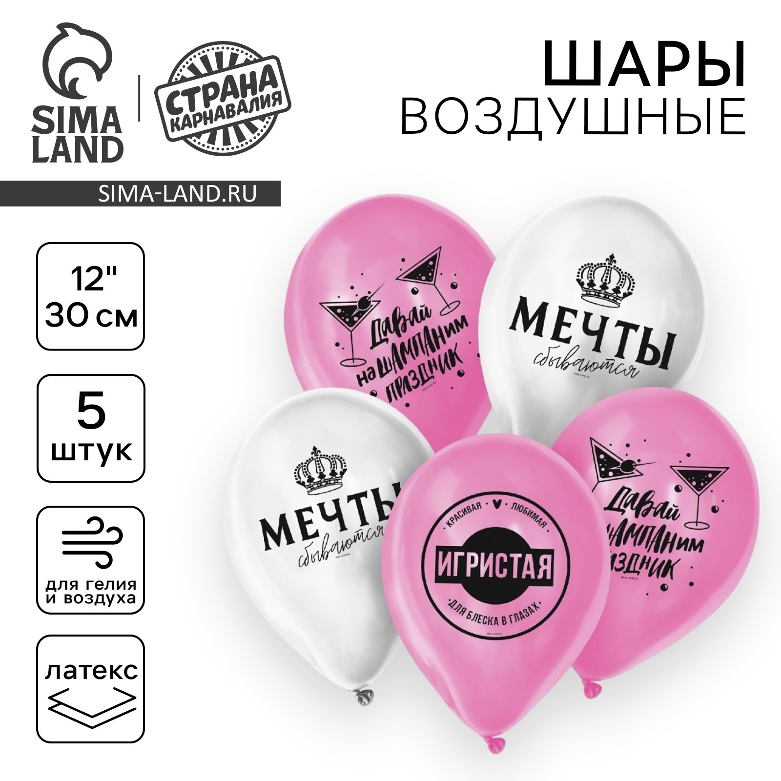 Воздушные шары латексные 12 «мечта», 5 шт.. Набор:Да|Цвет:Белый|Цвет:Розовый|Возраст:От 14 лет|В наборе, шт.:5|Диаметр, дюйм:12|Рисунок:Да|Тематика праздника:Универсальная тематика|Адресат:Женщине|Материал:Латекс|Тематика рисунка:Комплименты|Вид шара:Классический|Надувка шара:Воздухом|Надувка шара:Гелием|Язык надписи:Русский|Оттенок:Пастель|Страна:Россия  развернуть описание ▼
