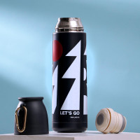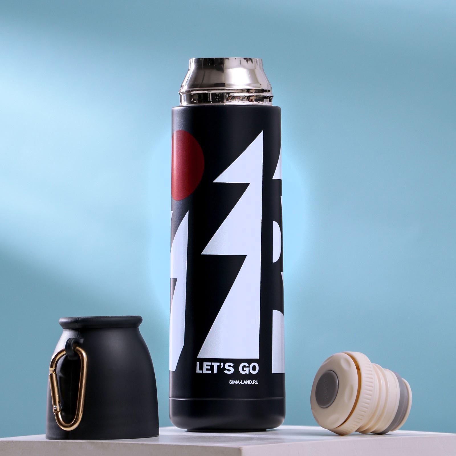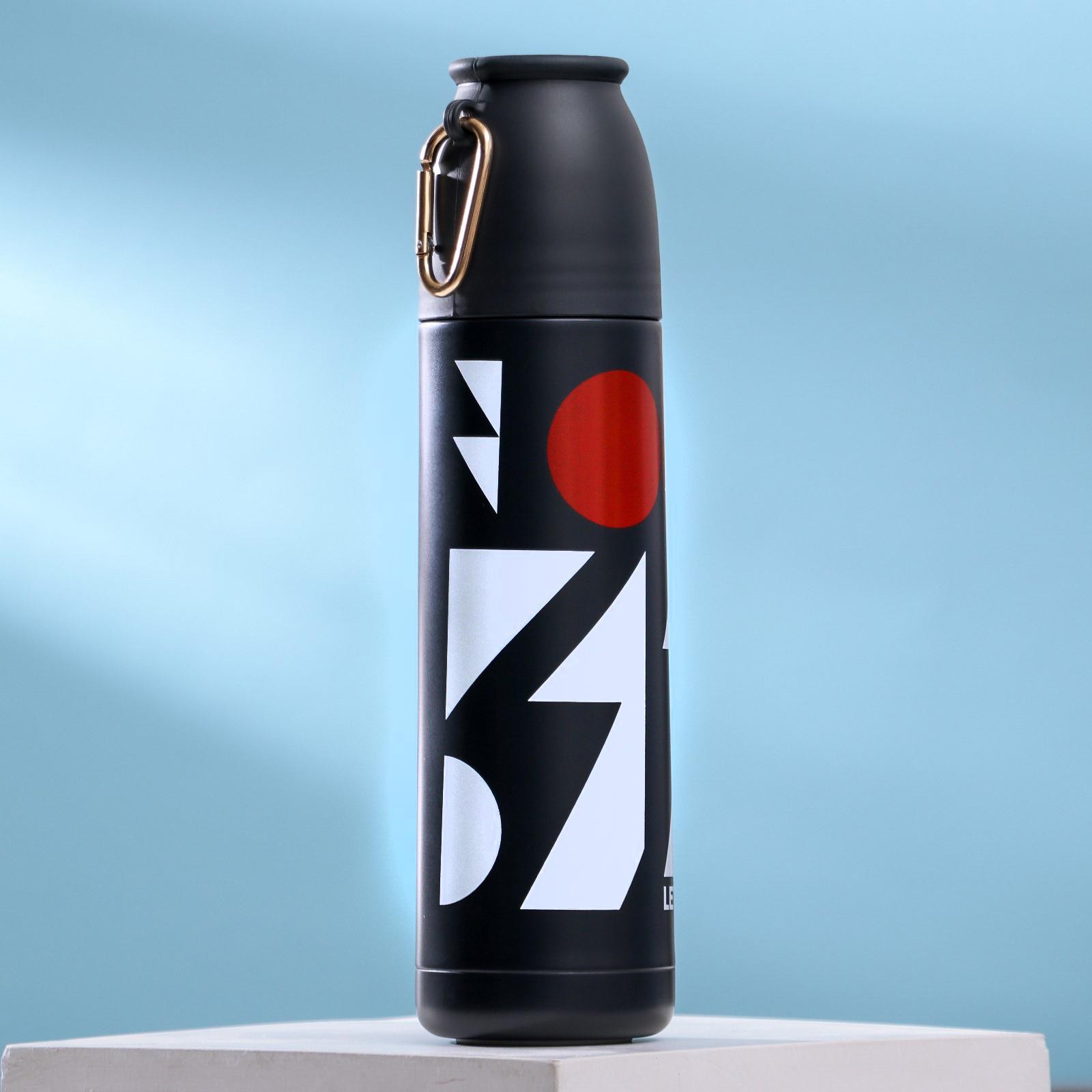 Array. Идеальный аксессуар для активных пользователей и любителей горячих напитков. Преимущества термоса: – Корпус изготовлен из высококачественной нержавеющей стали, которая защищает содержимое от внешних воздействий, а так же сохраняет вкус напитка неизменным. – Крышку можно использовать в качестве чашки, которая выполнена из безопасного для пищевых продуктов пластика. – Оснащен завинчивающейся пробкой, предотвращающей протекания жидкости. – Оптимальный объем - 500 мл - не займет много места. Подойдет как для туристических походов, так и для повседневного использования. – Термос снабжен карабином для комфортной переноски. – Сохраняет температуру от 12 до 14 часов. – Отлично подойдет в качестве подарка близким. Не рекомендуем мыть в посудомоечной машине и нагревать в микроволновой печи. Цвет: Чёрный Цвет: Белый Цвет: Красный Для кого: Для мужчины Объём, л: 0.5 Время сохранения тепла/холода, ч: 14 Объём, мл: 500 Материал корпуса: Нержавеющая сталь Тип горлышка: Стандартное Назначение: Для напитков Материал колбы: Металл Вид термоса: Туристический Особенности: С дополнительной ёмкостью Особенности: На подвесе Особенности: С кнопкой  развернуть описание ▼