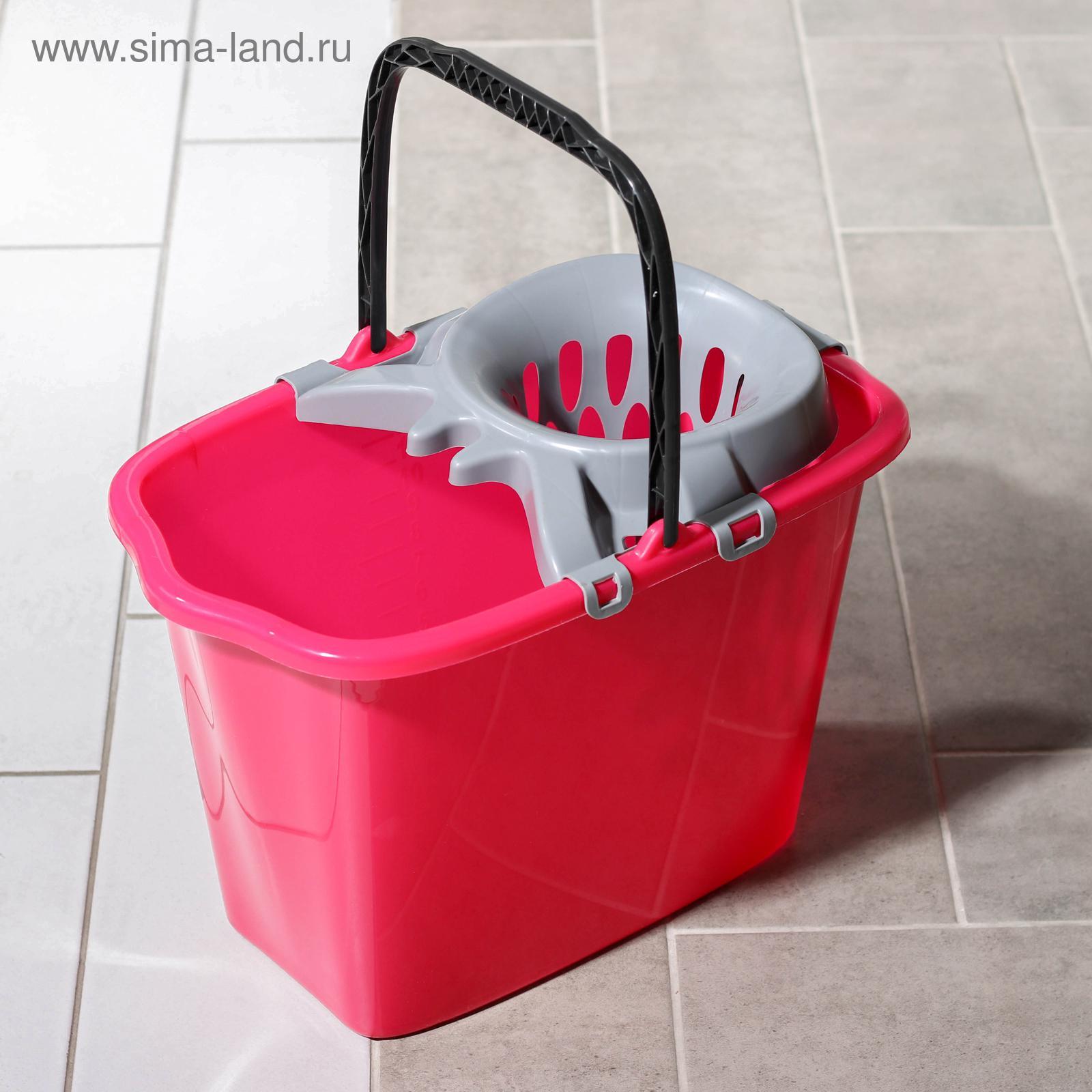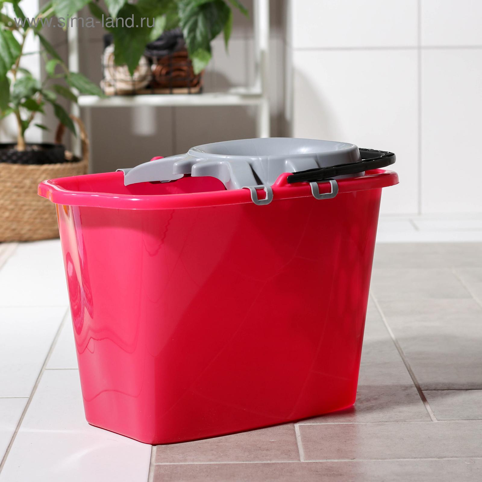 Ведро прямоугольное, 15 л, моп, со сливом и отжимом, цвет микс