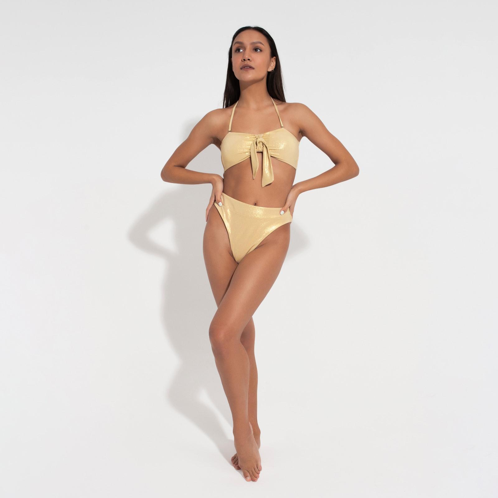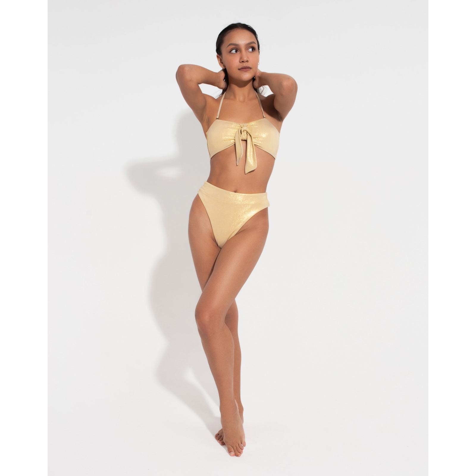 Купальник женский minaku "glow" цвет золотой, размер 46. Вид: Купальник Цвет: Золотистый Для кого: Для женщины Назначение: Пляж Размер: 46 Рост, см: 165 - 170 Рост модели на фото, см: 174 Сезон: Лето Вид застёжки: Завязки Пушап: Нет Тип купальника: Раздельный Размер чашки: C Размер чашки: B Декоративные элементы: Бант Комплектация: Купальник Рекомендации по уходу: Не отбеливать Рекомендации по уходу: Деликатная стирка при 30 °С Рекомендации по уходу: Глажка запрещена Тип посадки: Высокая Модель трусов: Слипы Вид бретелей: Бретель-петля Модель бюстгальтера: Бандо Параметры модели на фото (ОГ-ОТ-ОБ): 83-62-85 Сезон: Лето Особенность верха: Бандо Особенность низа: Бикини Размер одежды на модели: 42  развернуть описание ▼