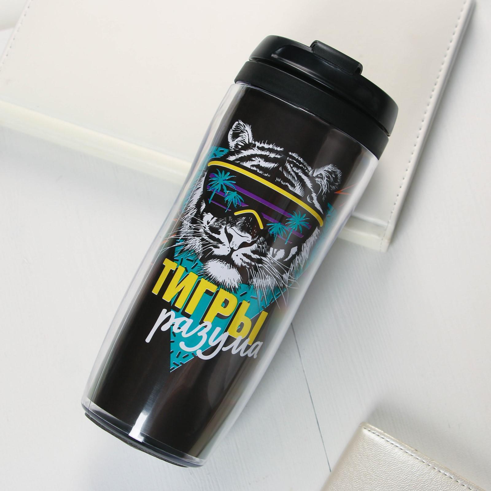 Термостакан со вставкой «тигры разума» 350 мл, сохраняет тепло 2 ч