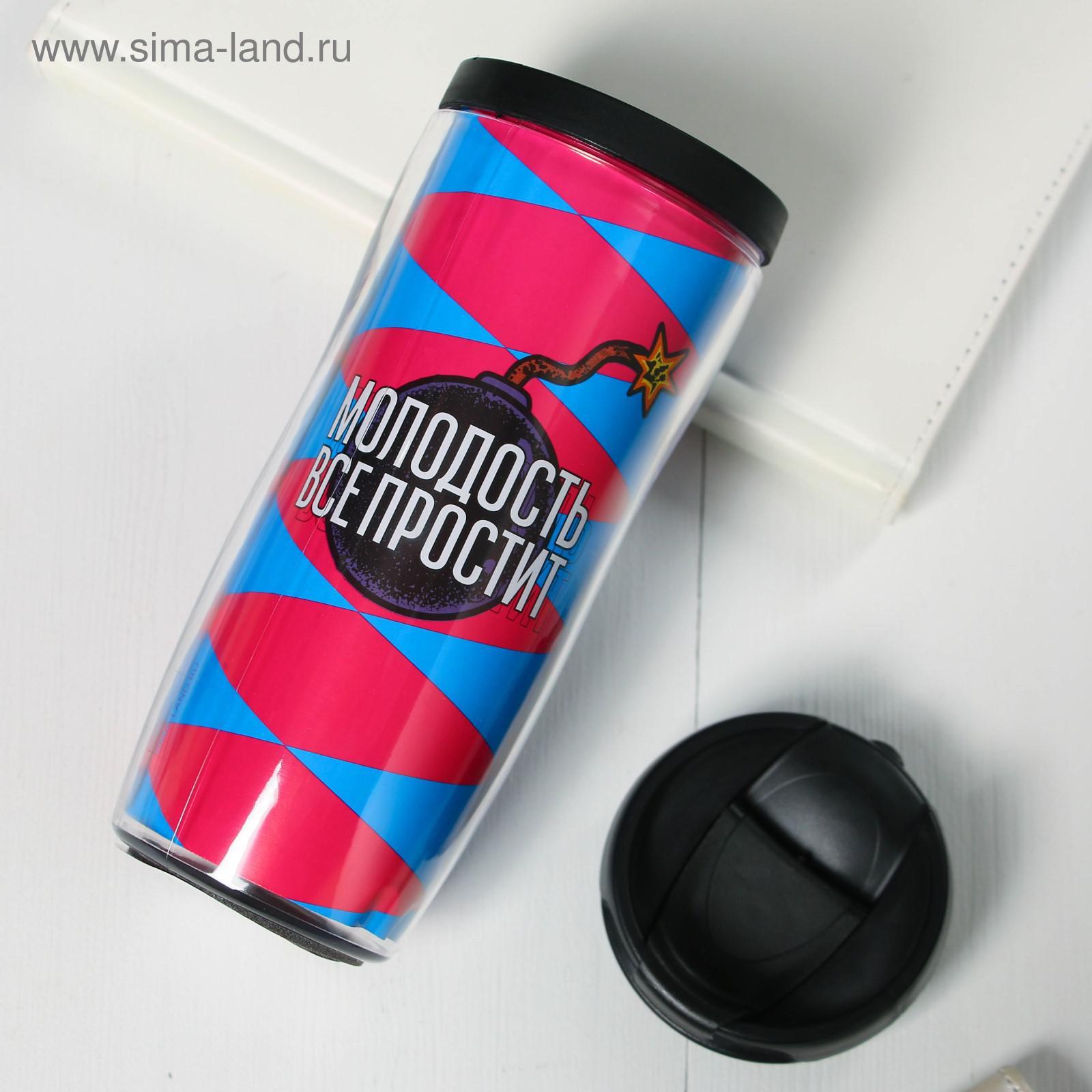 Термостакан со вставкой «молодость все простит» 350 мл, сохраняет тепло 2 ч