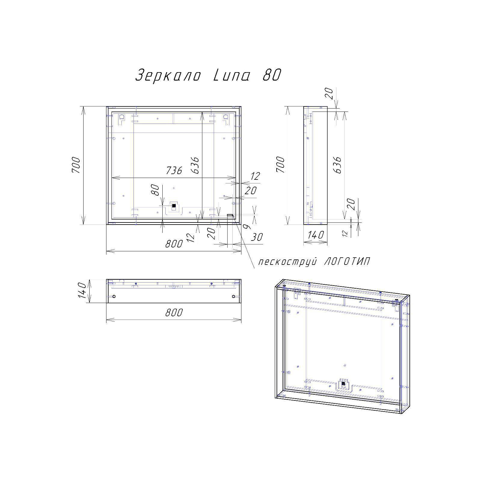 Зеркало Cersanit Louna 80, 800х700 мм, с подсветкой, белый