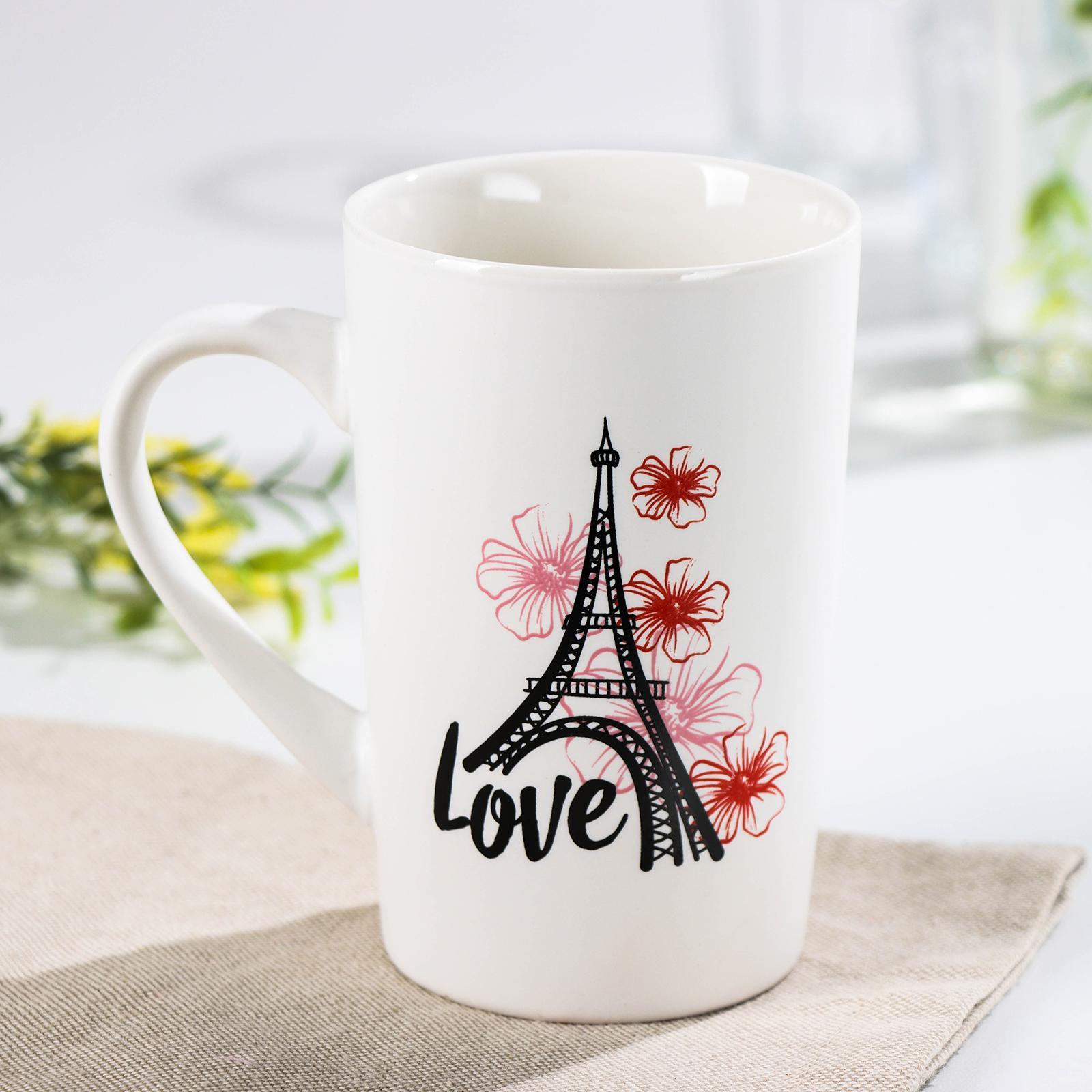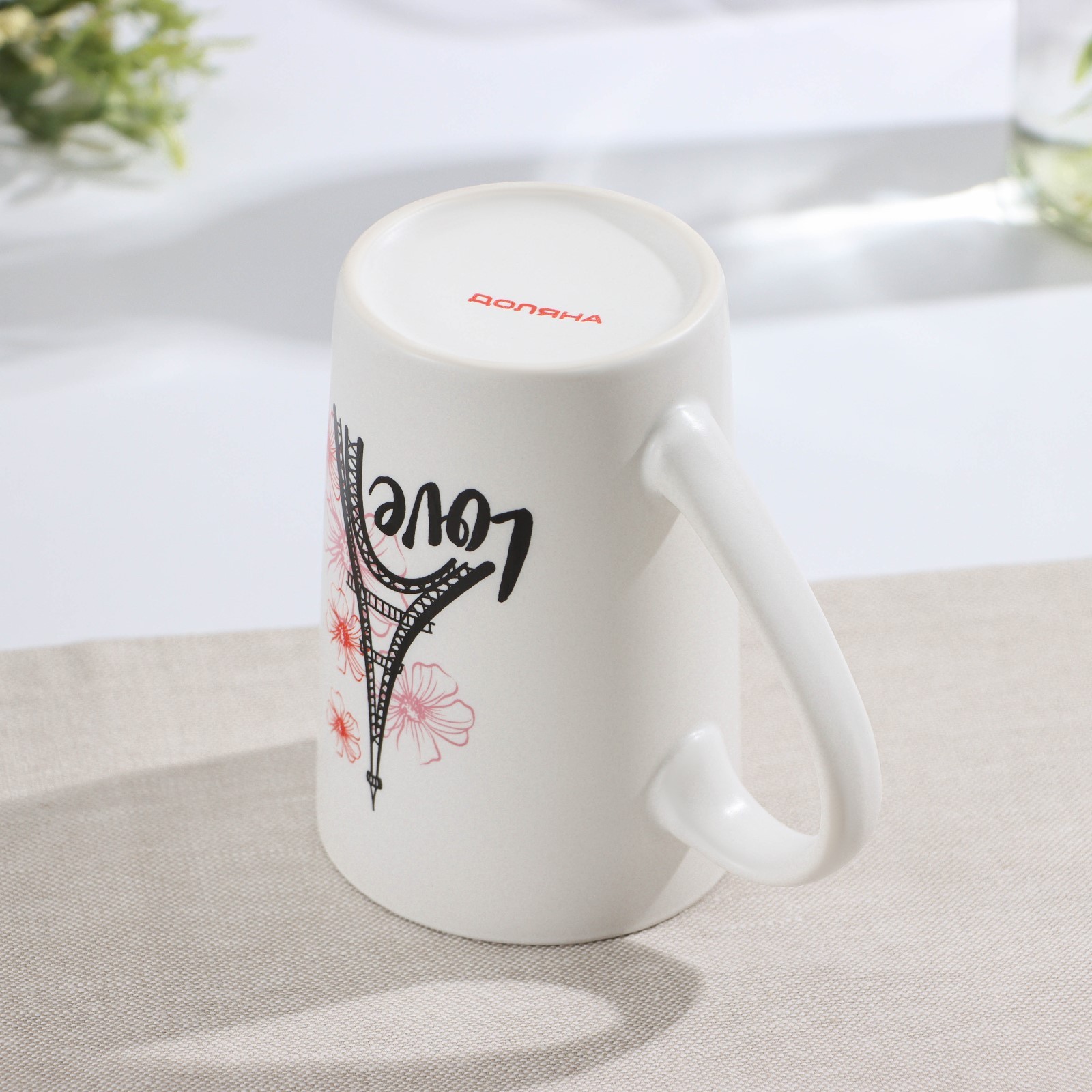 Кружка фарфоровая доляна «любовь в париже», 380 мл, цвет белый