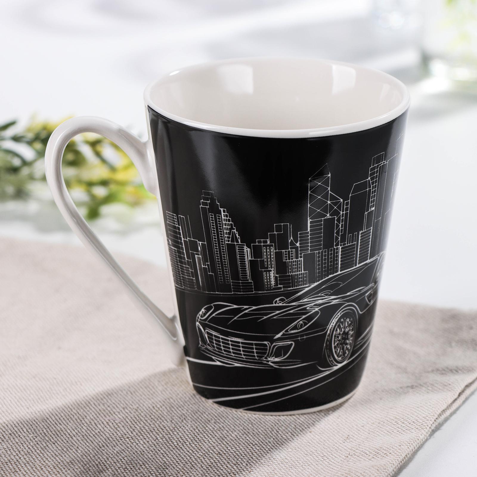 Кружка фарфоровая доляна «машина», 310 мл, цвет чёрный