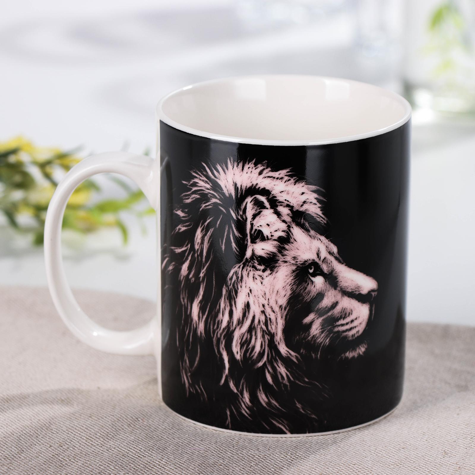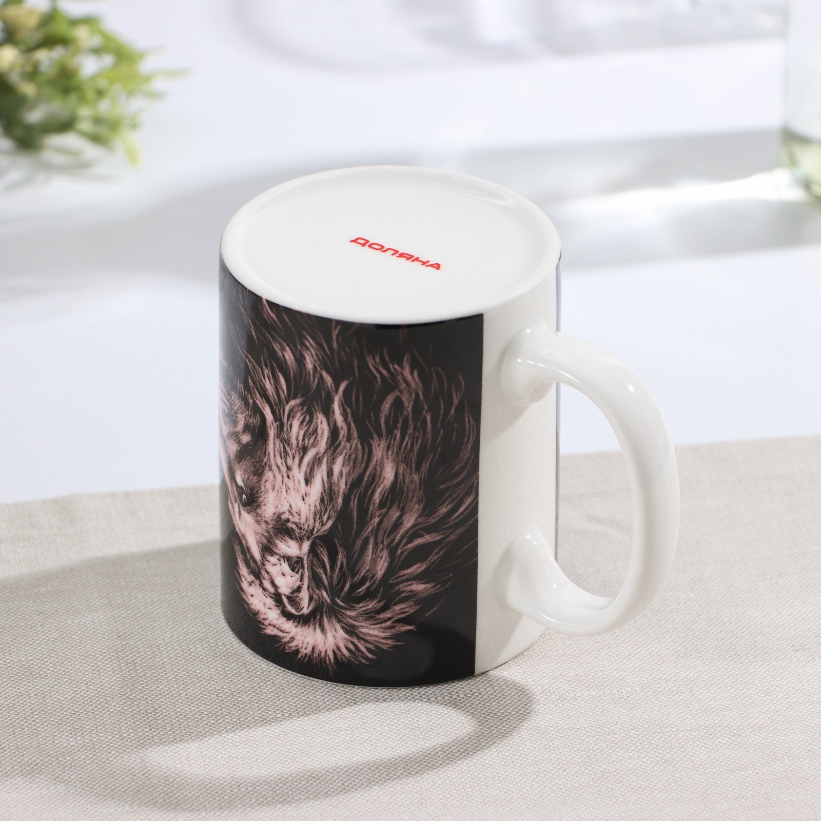 Кружка фарфоровая доляна «львинная сила», 320 мл, цвет чёрный