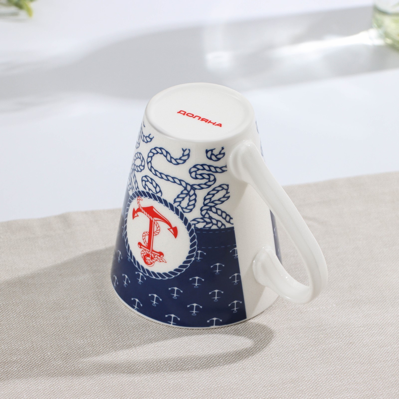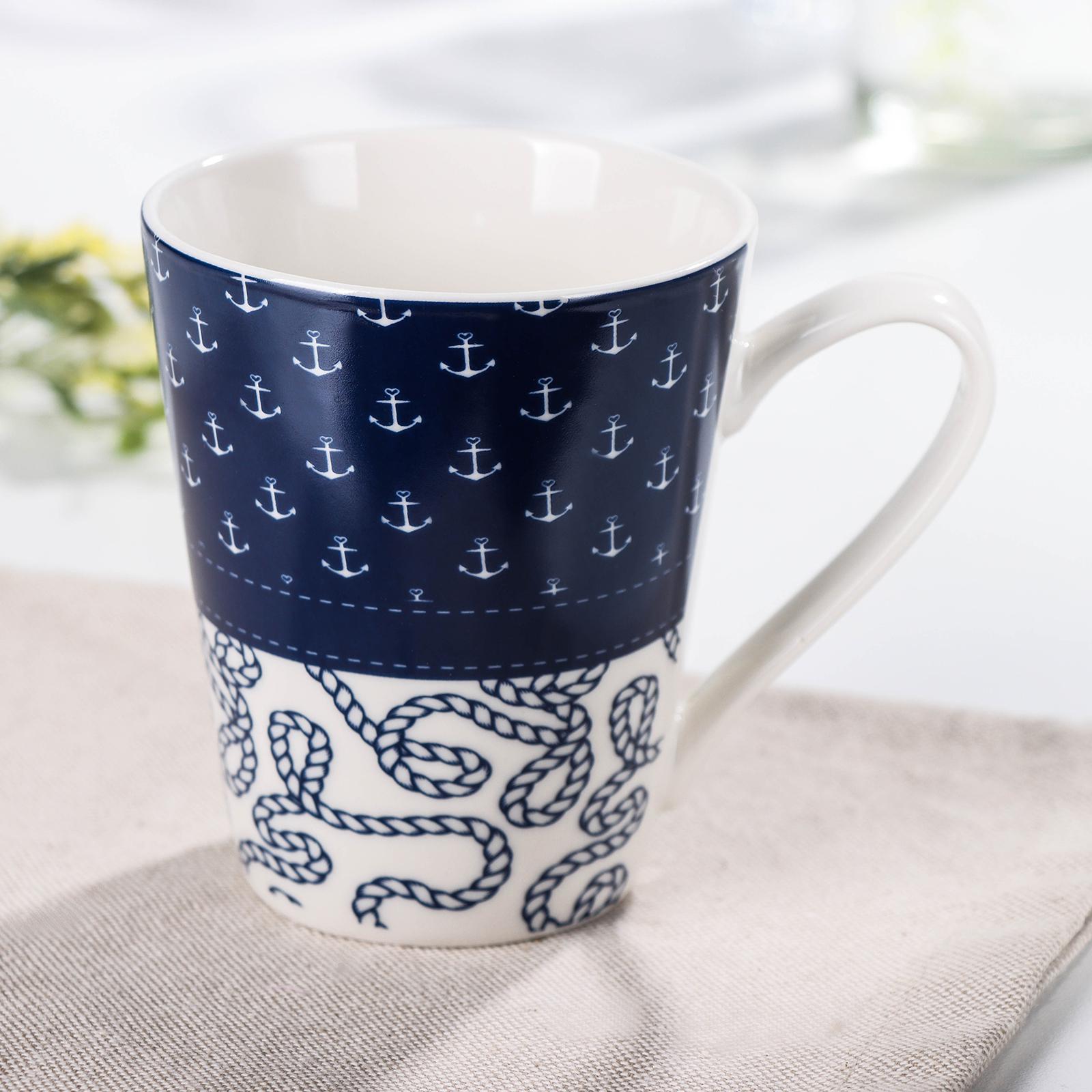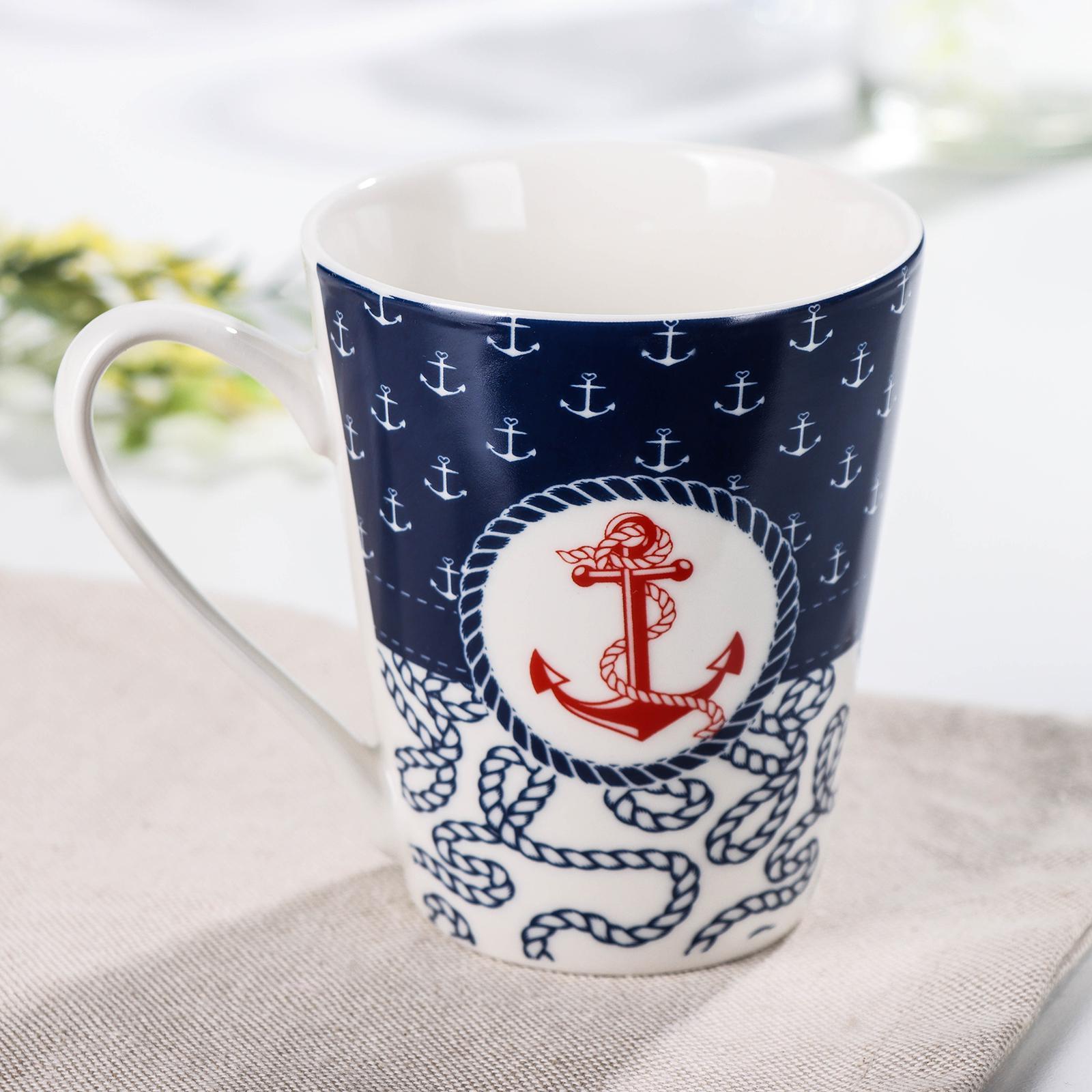 Кружка фарфоровая доляна «морячок», 310 мл, цвет синий и белый