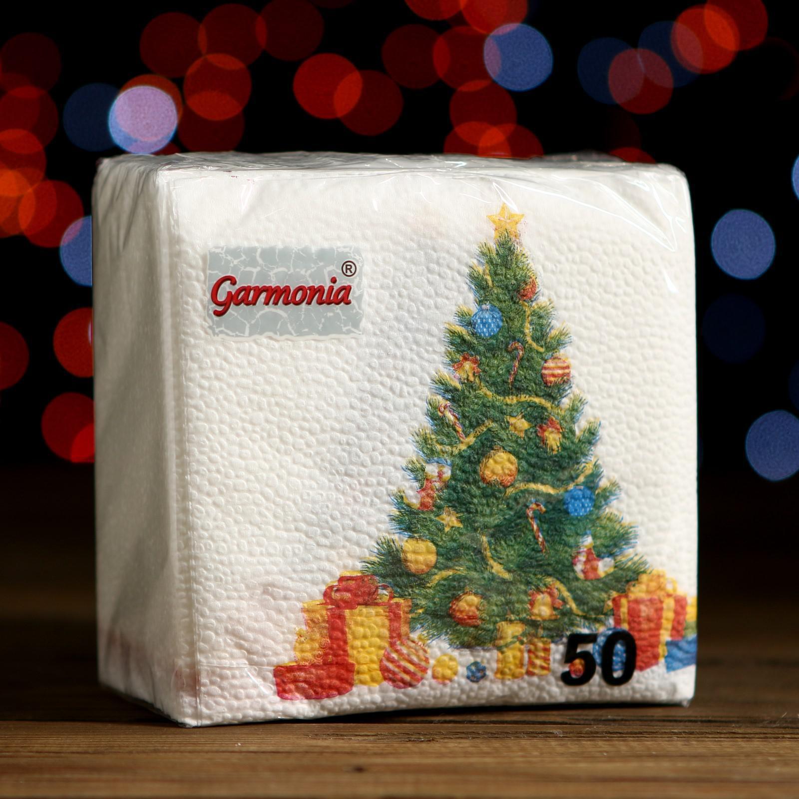 Новогодние салфетки бумажные гармония цвета многоцветие "елка", 24*24 см 50 листов