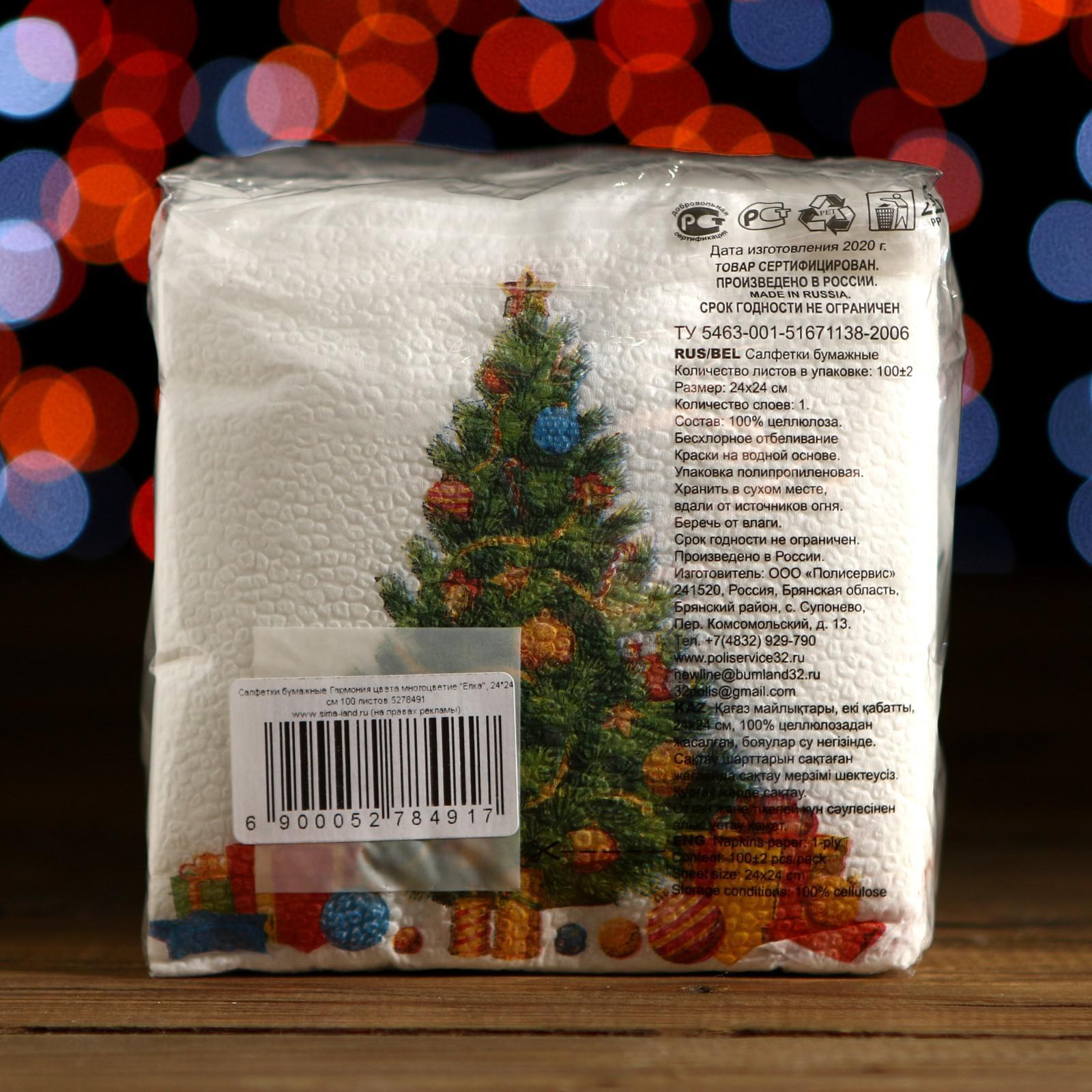 Новогодние салфетки бумажные гармония цвета многоцветие "елка", 24*24 см 100 листов