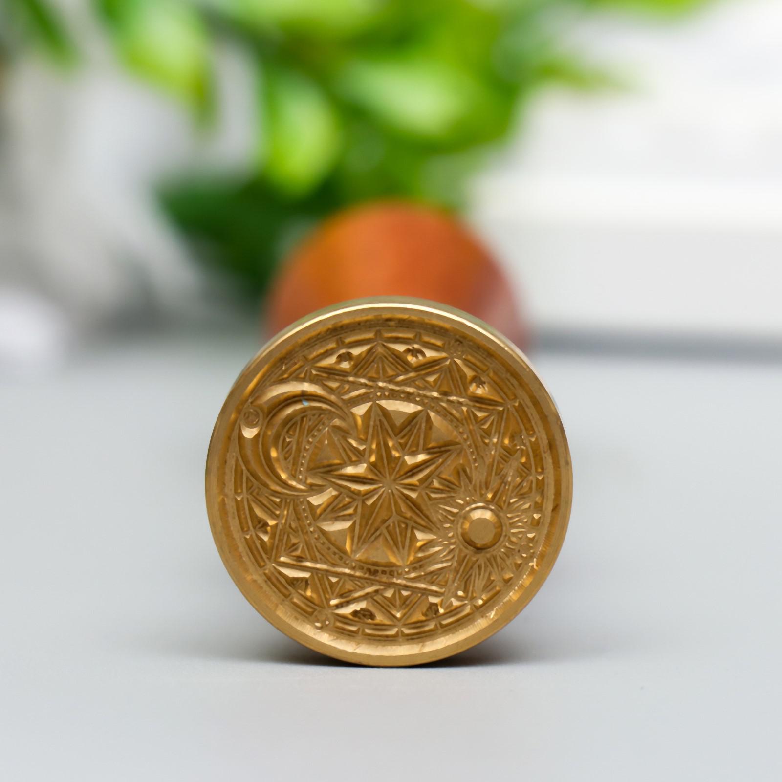 Печать для сургуча с деревянной ручкой «месяц и солнце-звезда», 9 3 3 см