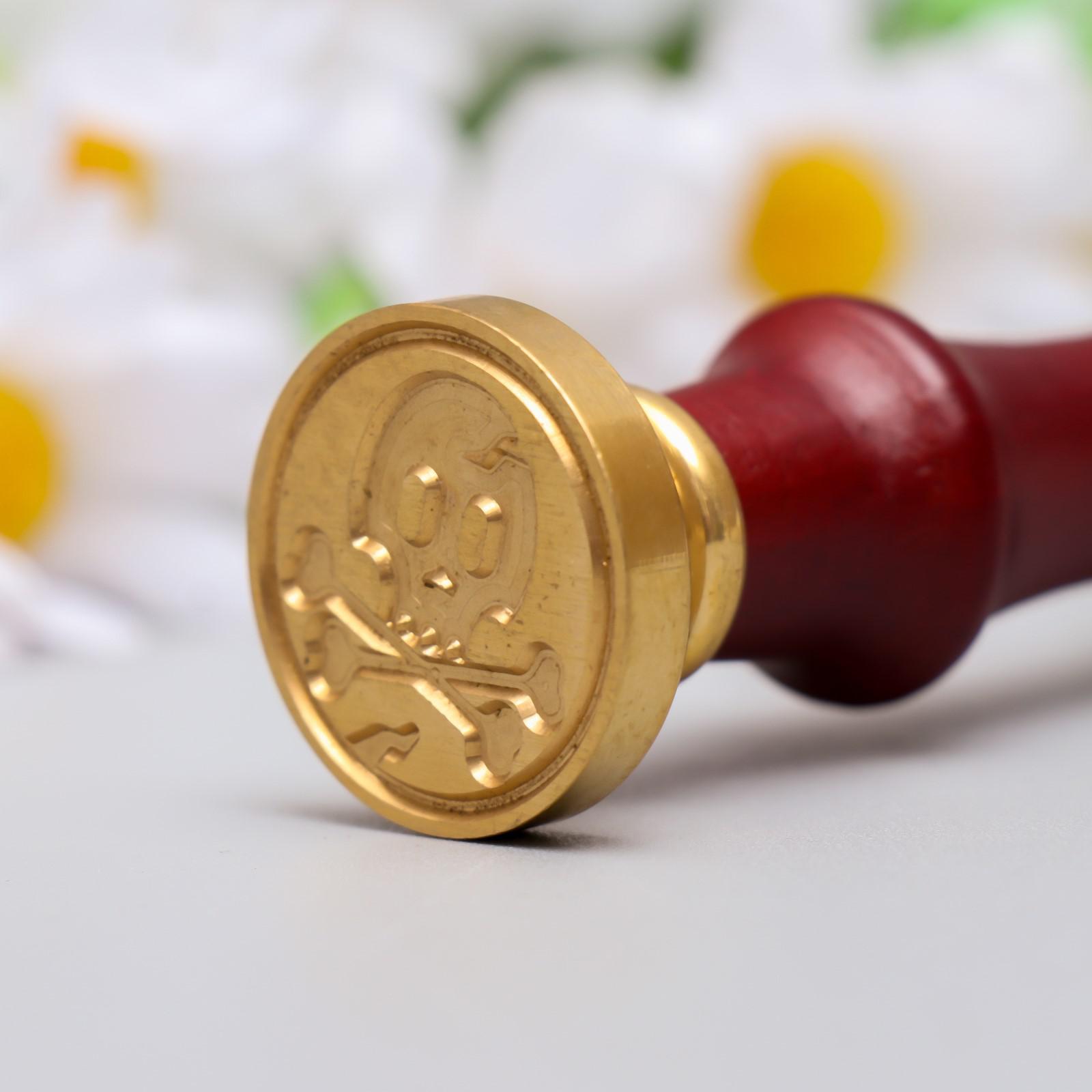 Печать для сургуча с деревянной ручкой «череп и кости», 9 2.5 2.5 см. Набор:Нет|Тематика:Хеллоуин|Тематика:Черепа, скелеты|Материал:Металл|Материал:Дерево|Тип:Сургучная печать|Страна:Китай