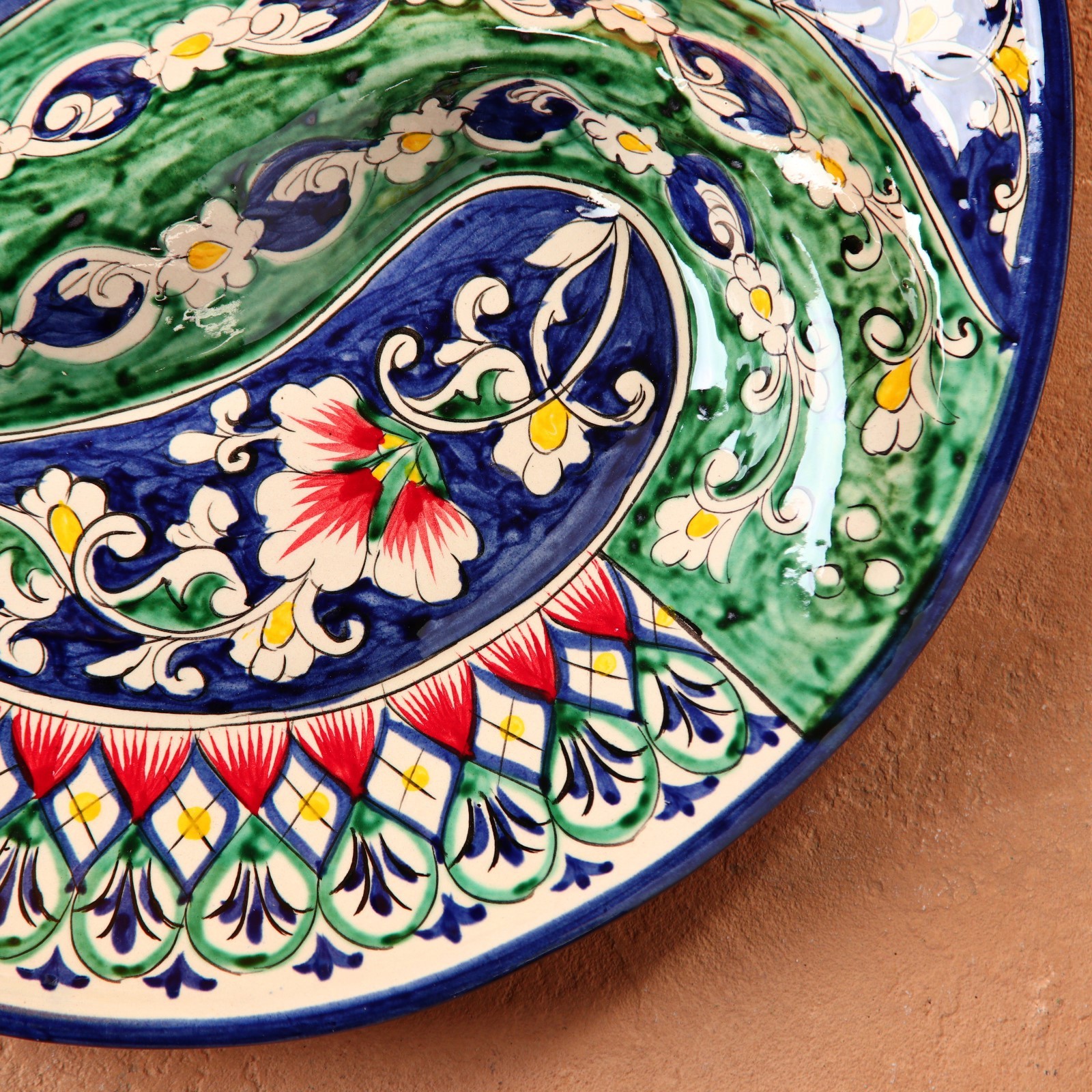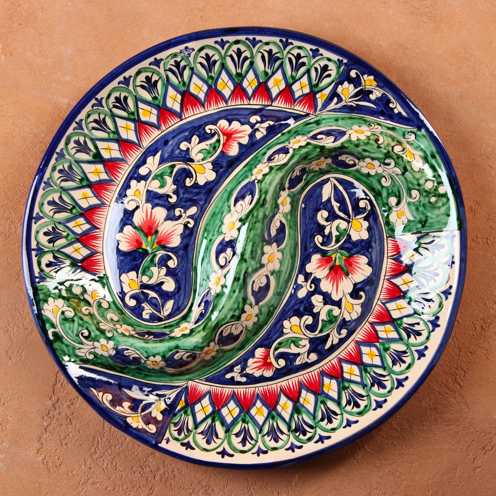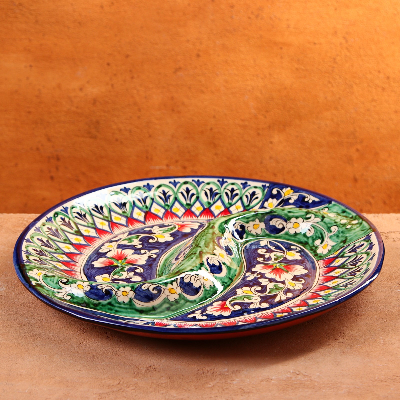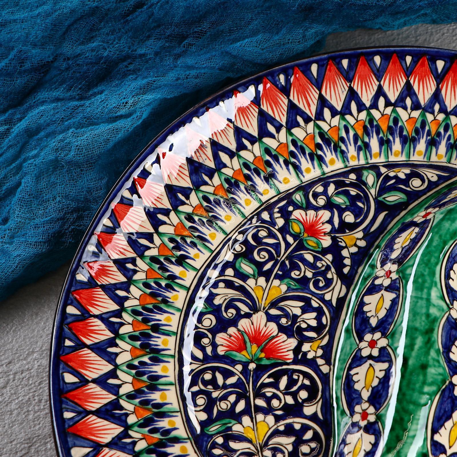 Менажница риштанская керамика "цветы", 32 см, 2-х секционная, синяя