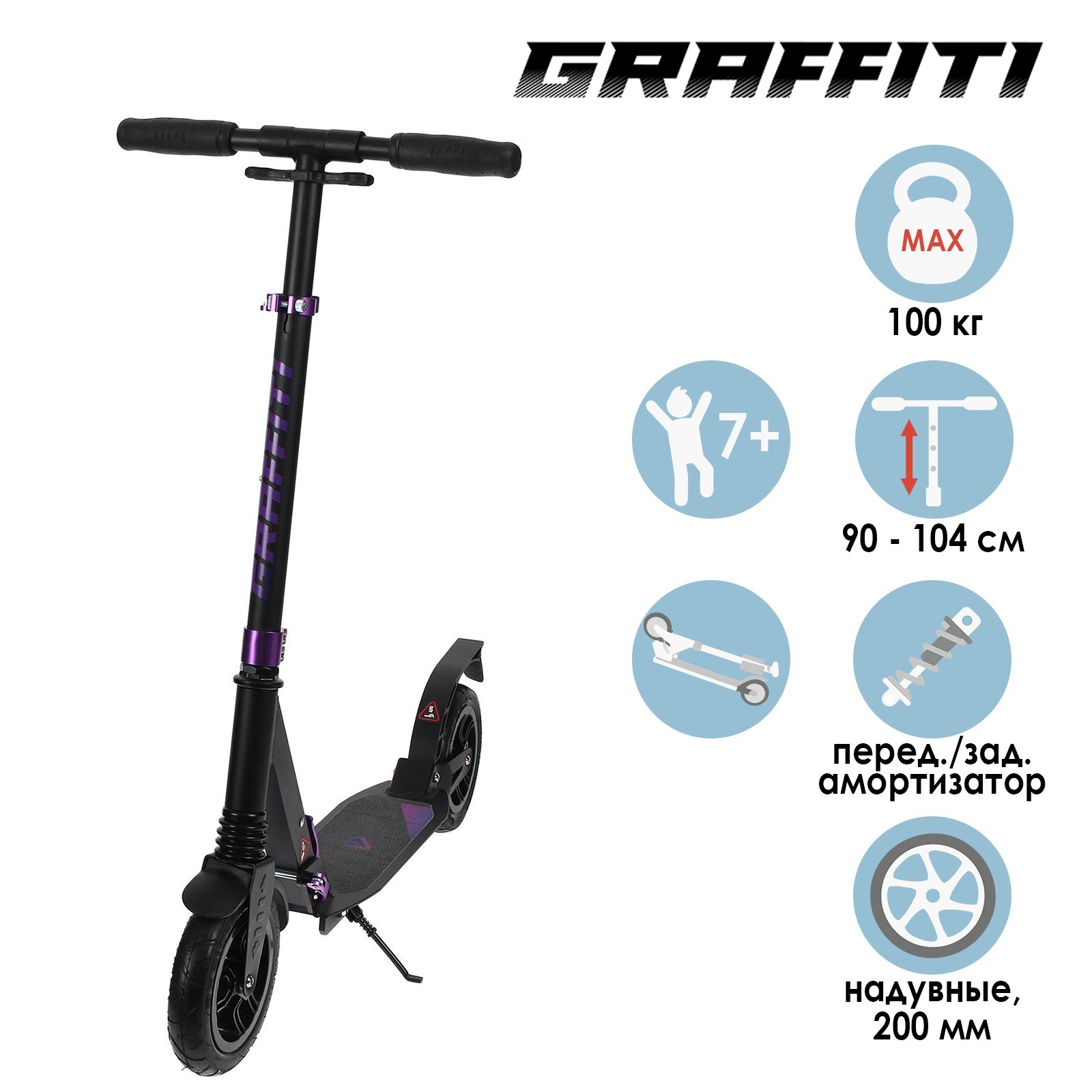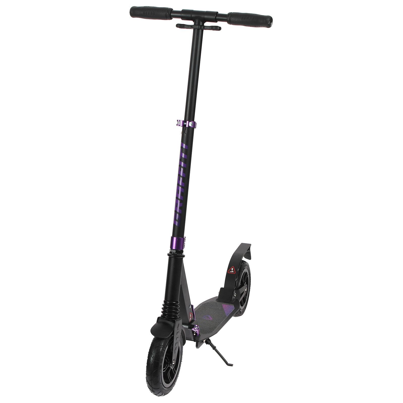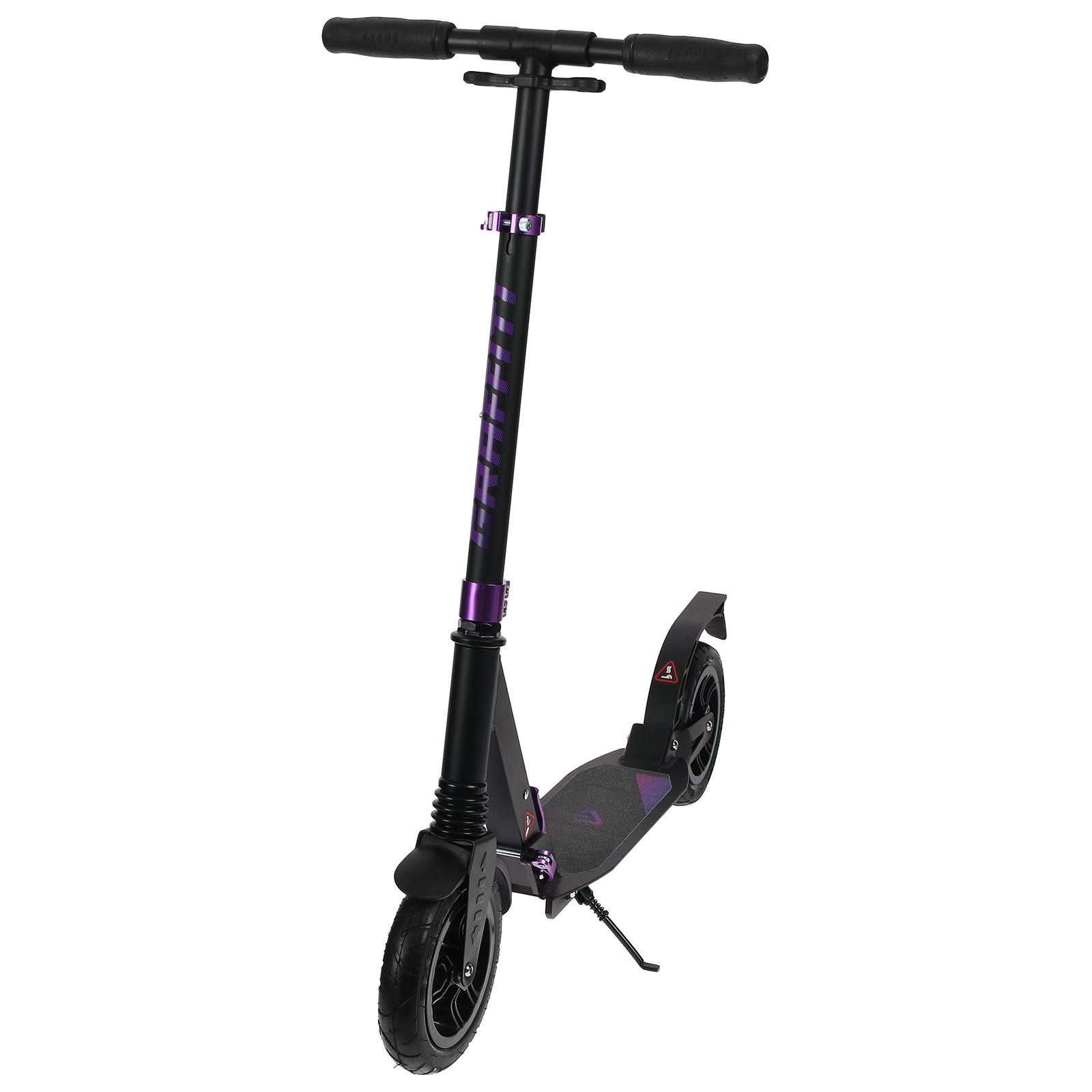 Самокат алюминиевый, складной, колёса надувные 200 мм, 2 амортизатора. Самокат оснащён складным механизмом, благодаря которому транспорт комфортно хранить и транспортировать. Амортизатор смягчает движения по неровностям. Надувные резиновые колёса производят минимум шума при движении. Цвет: Чёрный Возраст: От 7 лет Количество колёс: 2 Диаметр колеса, мм: 200 Материал колёс: Резиновые надувные Серия: Без серии Максимально допустимый вес, кг: 100 Сиденье: Нет Высота руля, см: 90 - 104 Мотор: Нет Инерционный: Нет Ширина руля, см: 40 Особенности самоката: Регулировка высоты руля Особенности самоката: Складной механизм Особенности самоката: Подножка Особенности самоката: Ножной тормоз Особенности самоката: Амортизатор Размер платформы: 34 х 12 Материал деки: Алюминий Вид самоката: Городской Материал руля: Алюминий  развернуть описание ▼