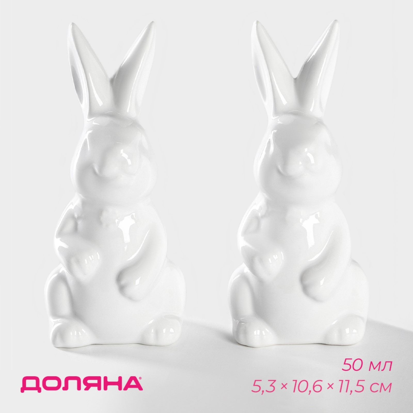 Набор для специй доляна «зайка», 2 предмета: солонка 50 мл, перечница 50 мл, цвет белый