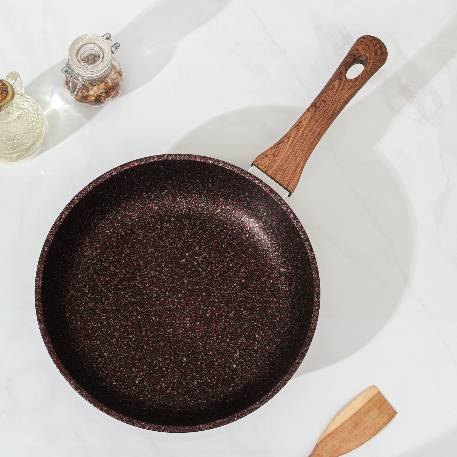 Сковорода Granit Ultra Red, D=26 см, пластиковая ручка, стеклянная крышка, антипригарное покрытие, цвет коричневый