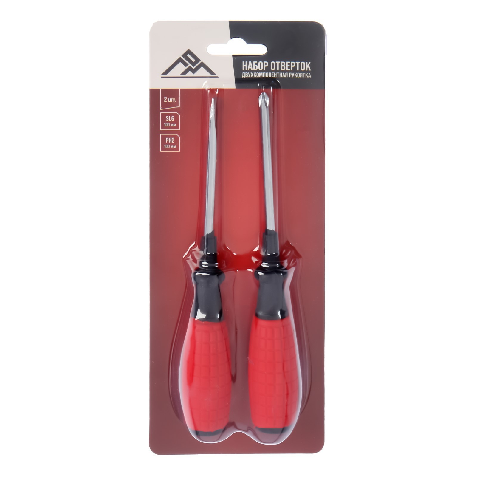 Набор отверток лом, обрезиненные рукоятки, Ph2/sl6 100 мм, 2 шт.