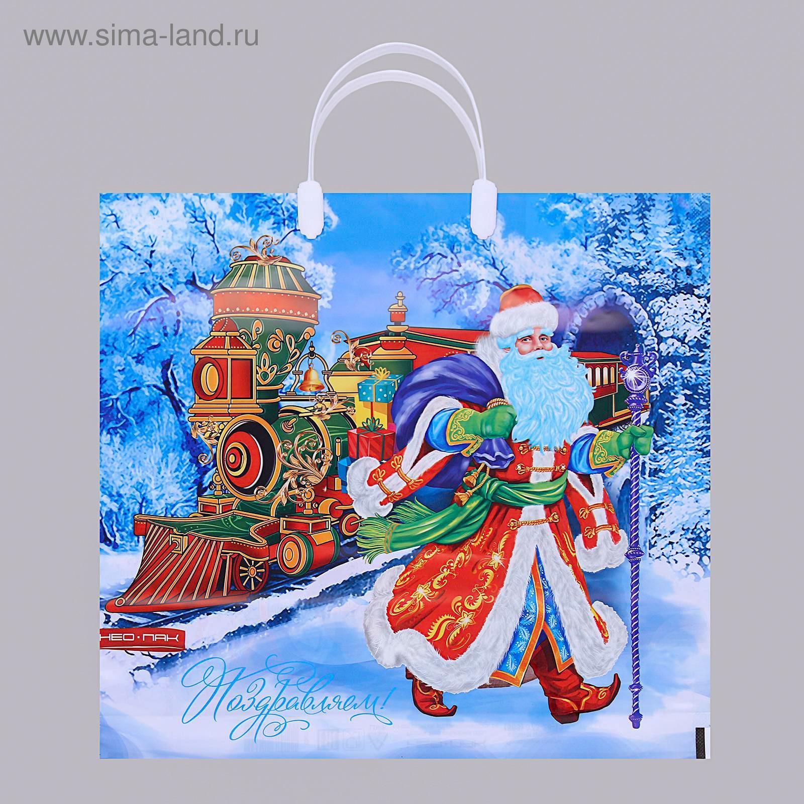 Пакет подарочный новогодний «сказочный поезд», полиэтиленовый с пластиковой ручкой, 37 35 см