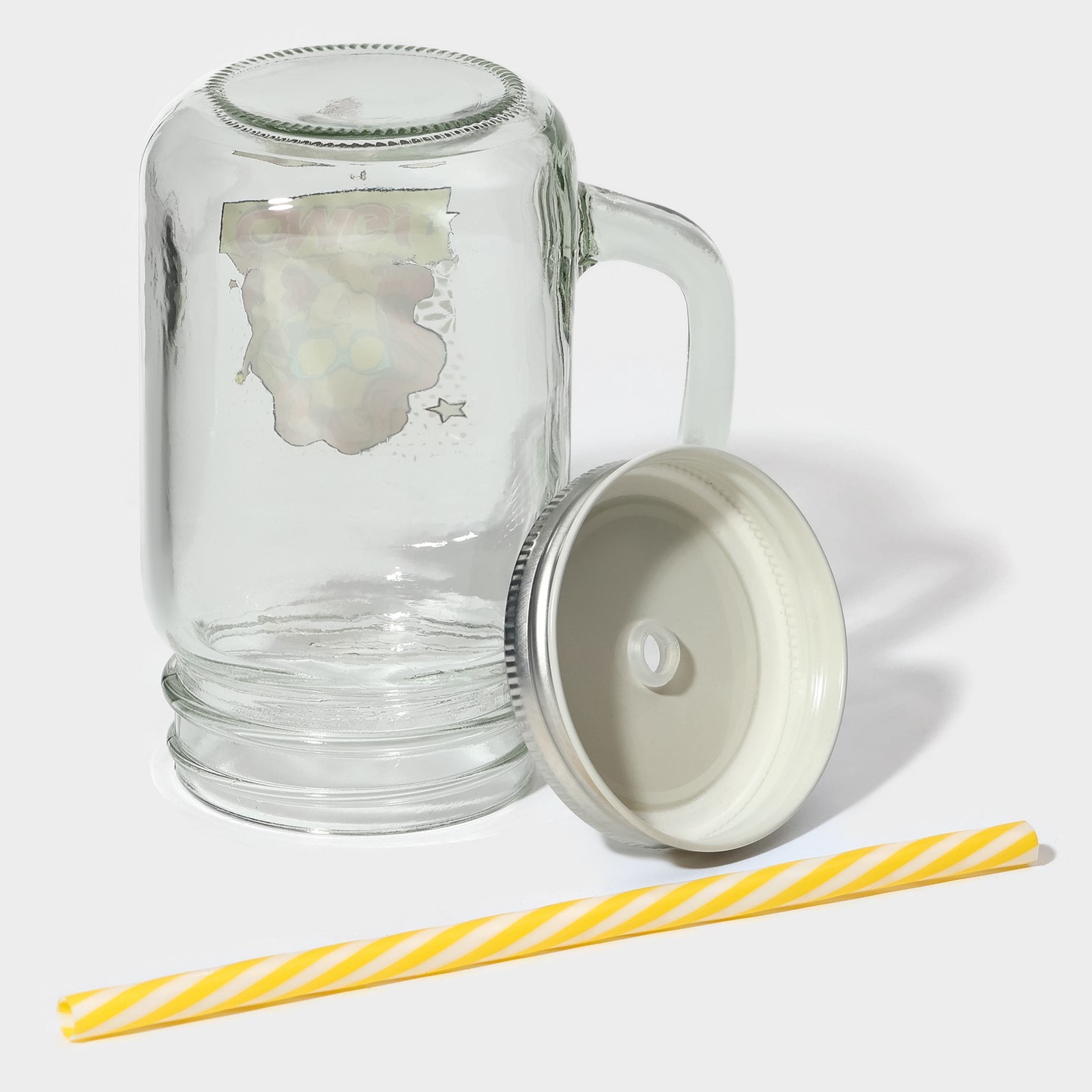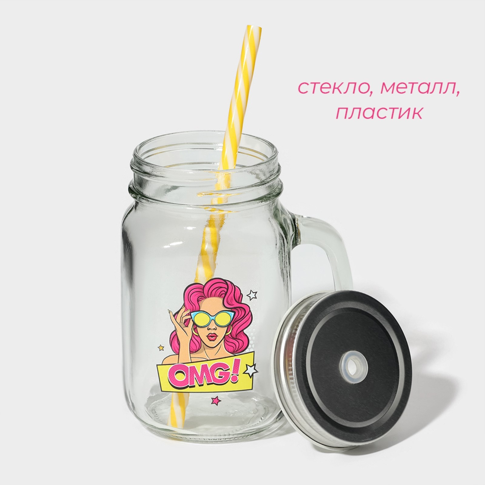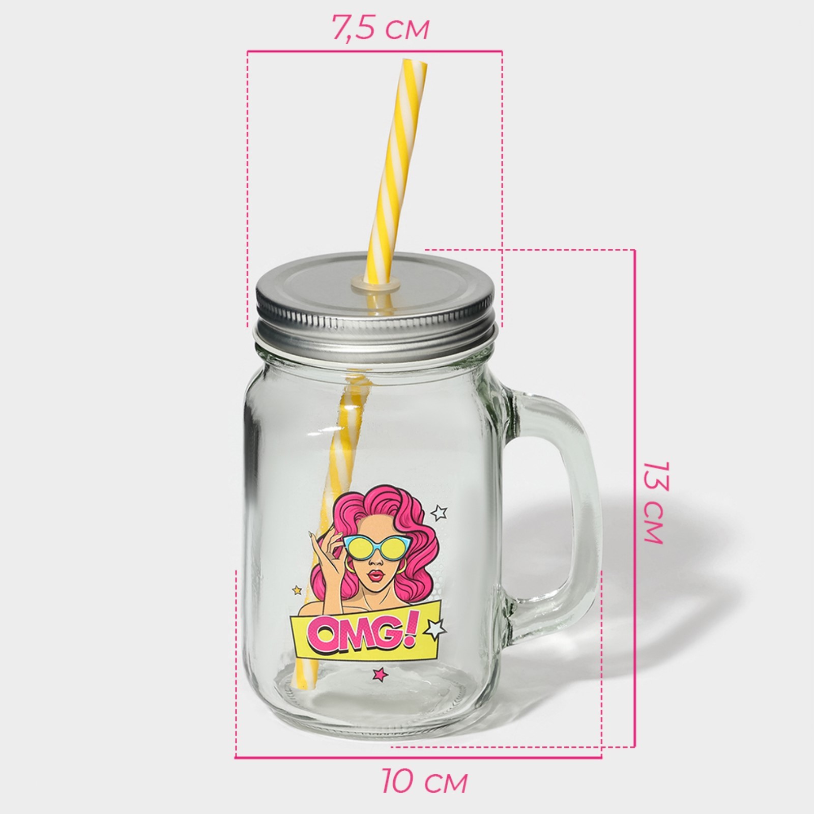 Банка стеклянная с крышкой и трубочкой доляна «комикс», 450 мл, 10x7,5x13 см,