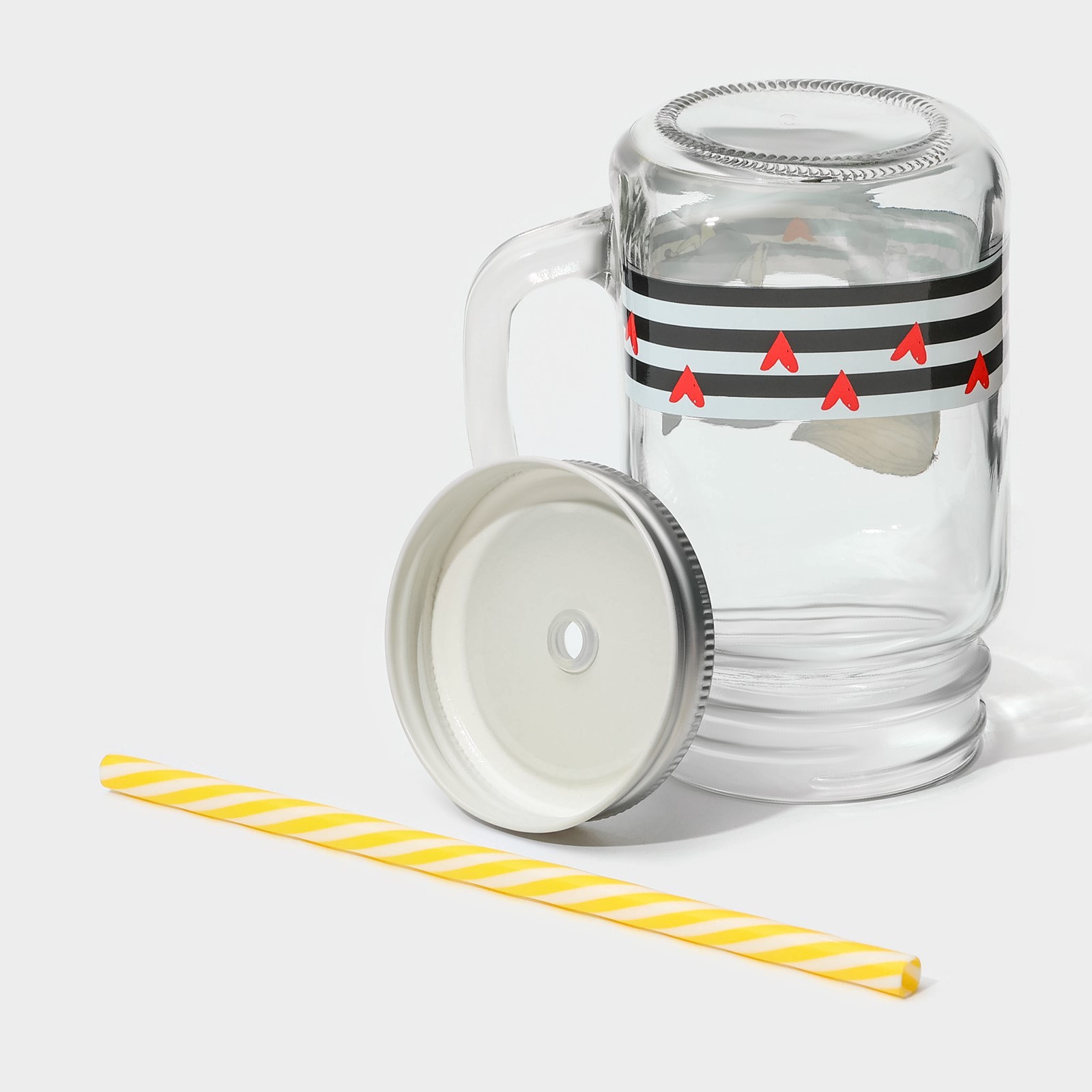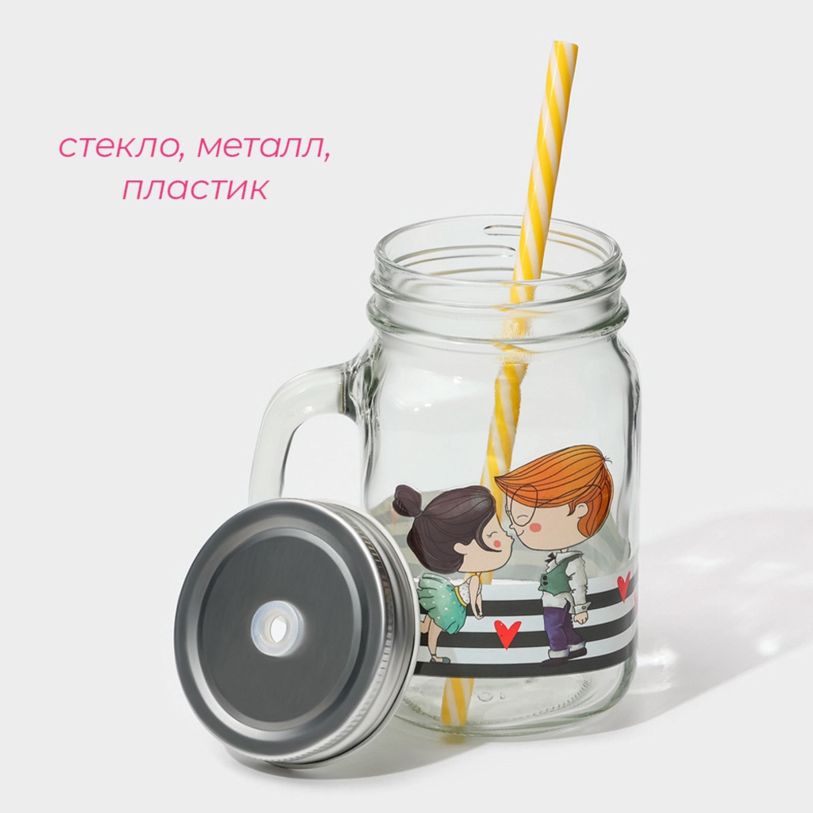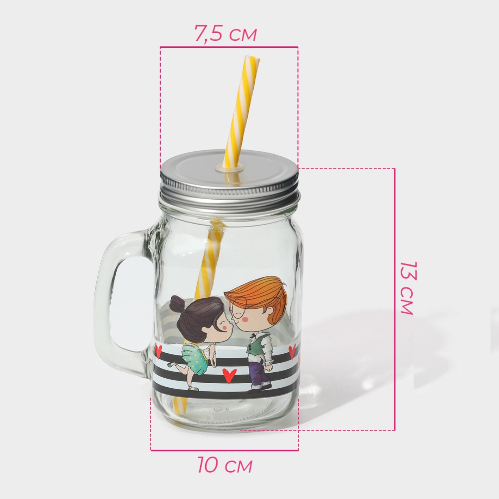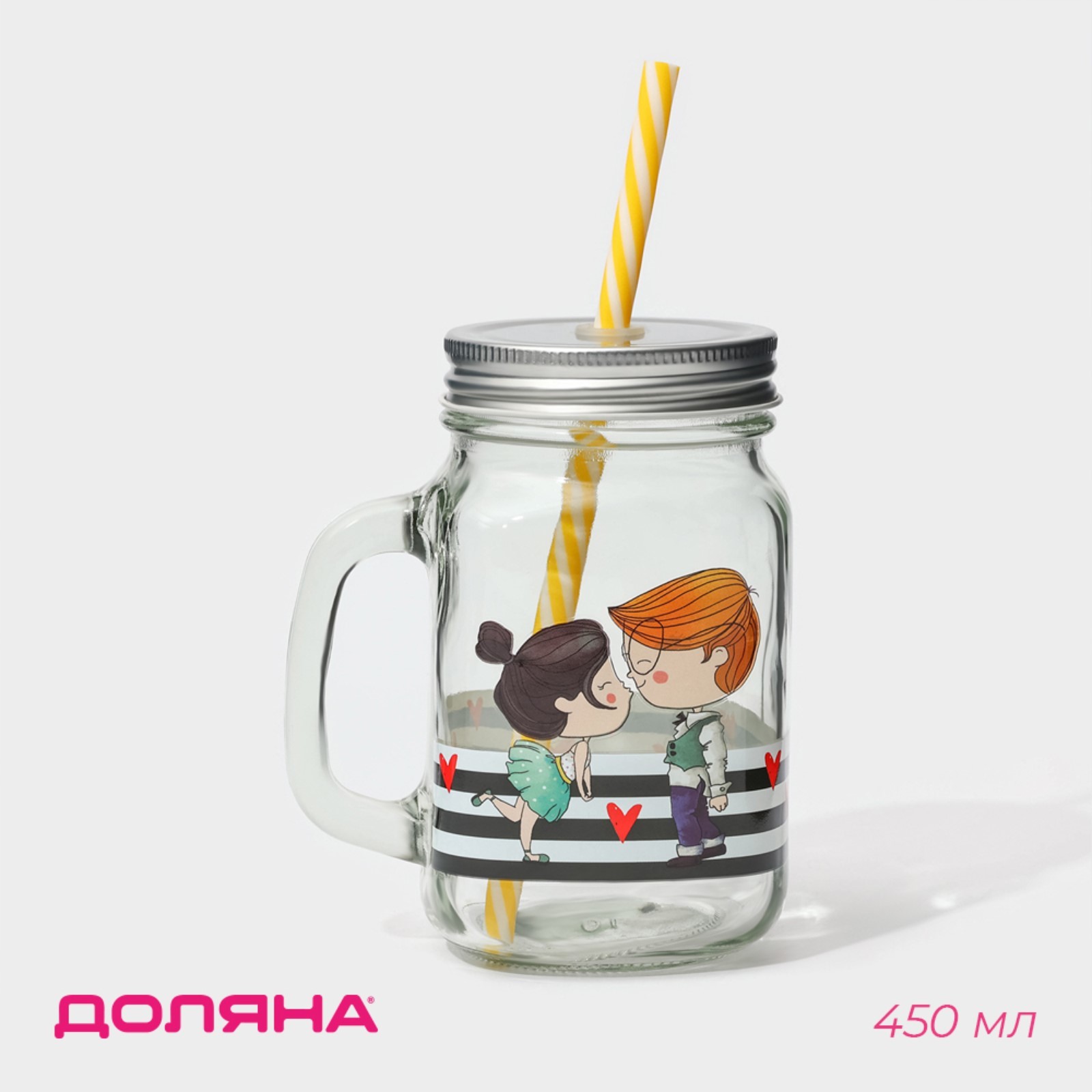 Банка стеклянная с крышкой и трубочкой доляна «поцелуй», 450 мл, 10x7,5x13 см