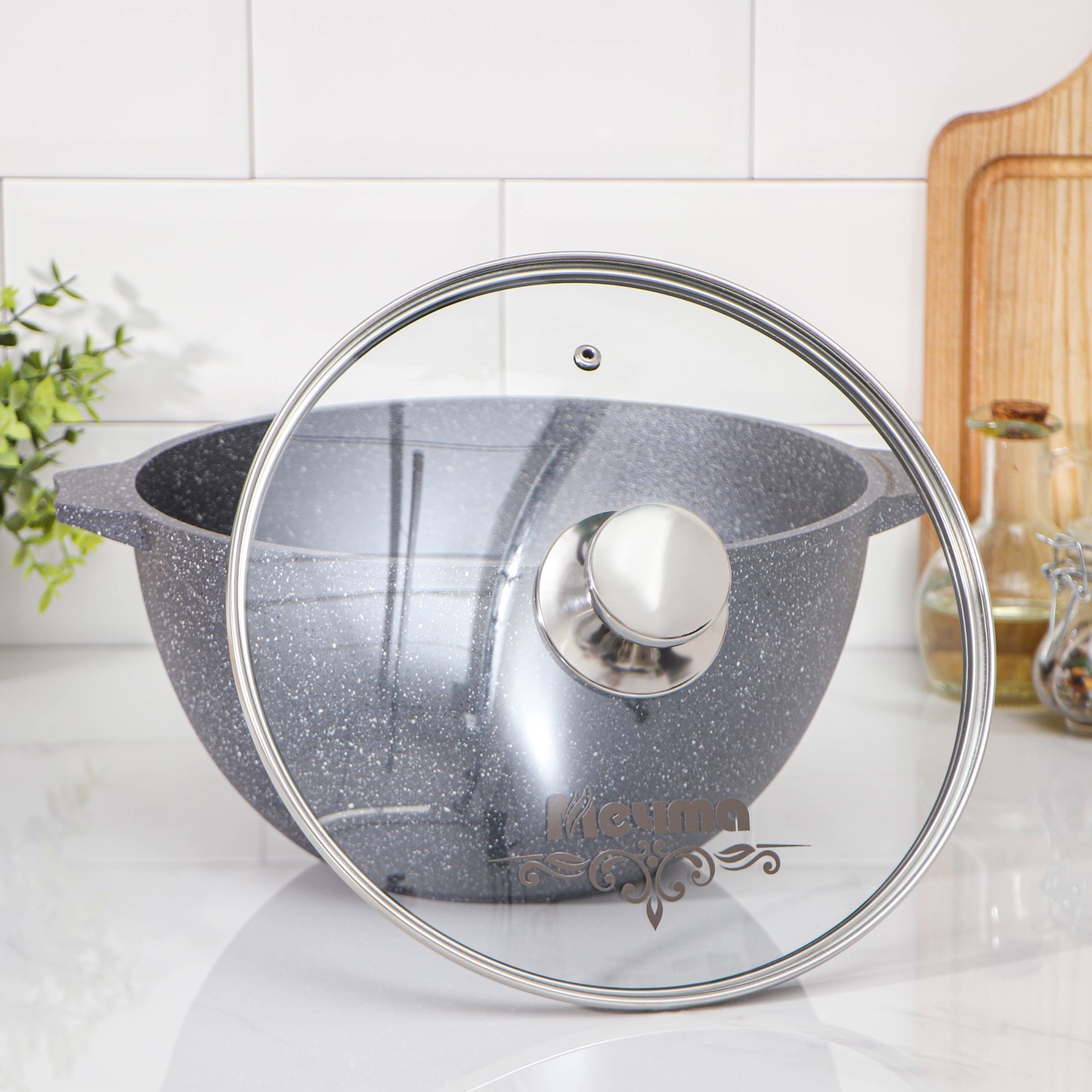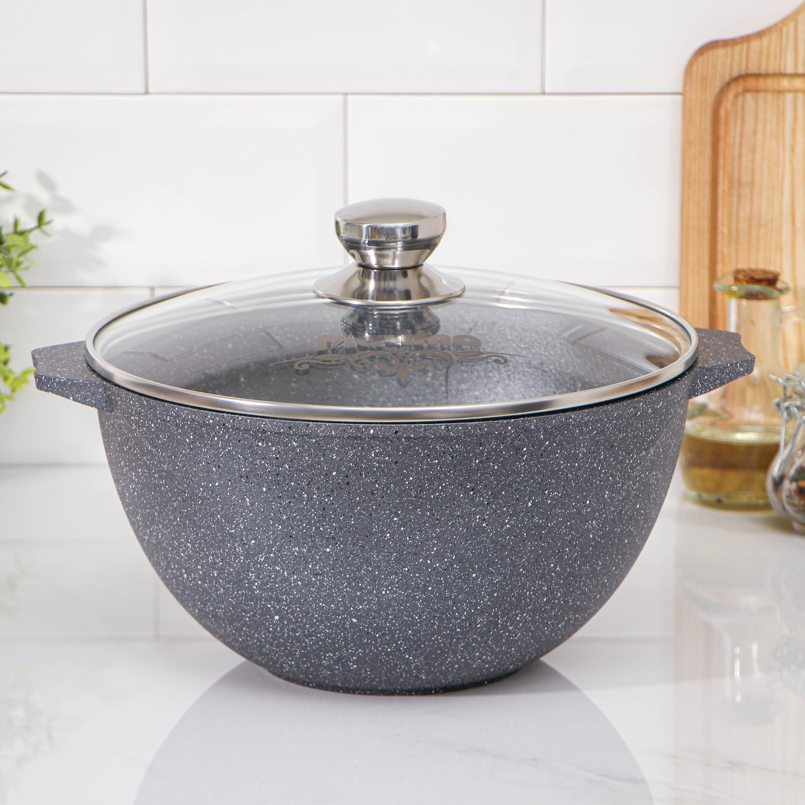 Казан «гранит», 5 л, стеклянная крышка, литые ручки, антипригарное покрытие, цвет серый