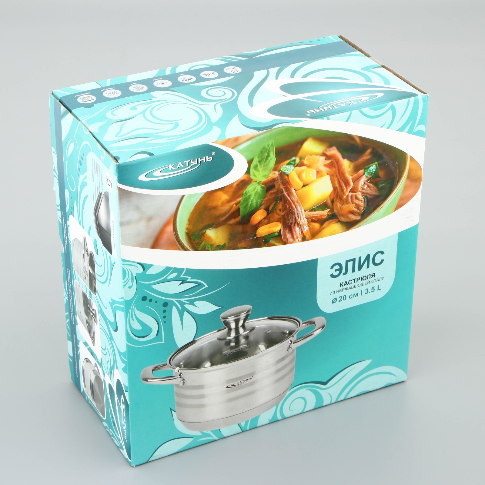 Кастрюля «элис», 3,5 л, D=20 см, стеклянная крышка, капсульное дно
