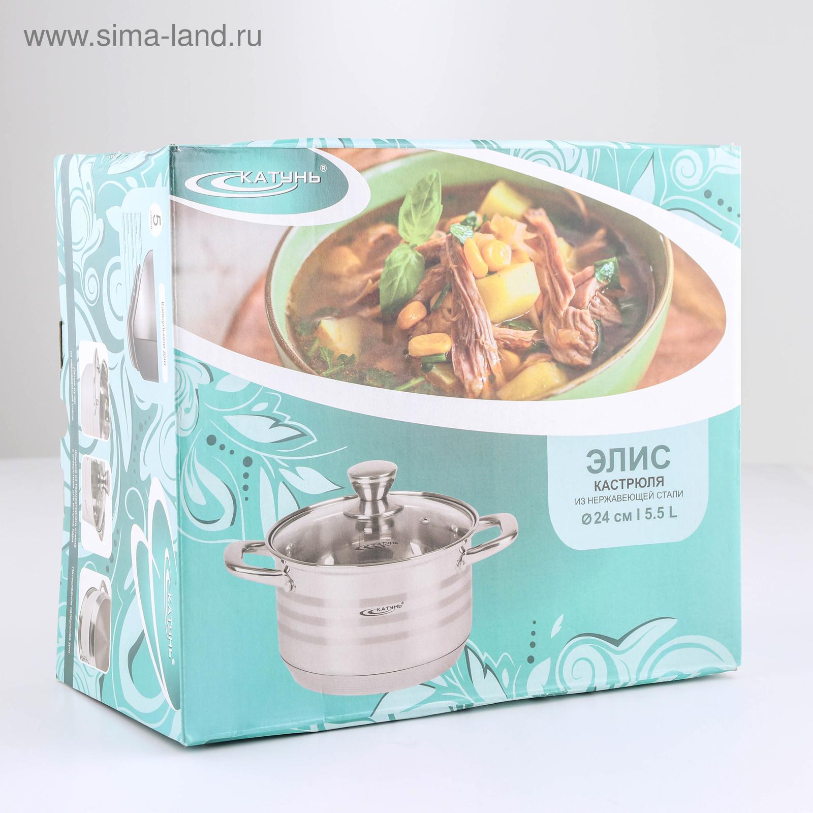 Кастрюля «элис», 5,5 л, D=24 см, стеклянная крышка, капсульное дно