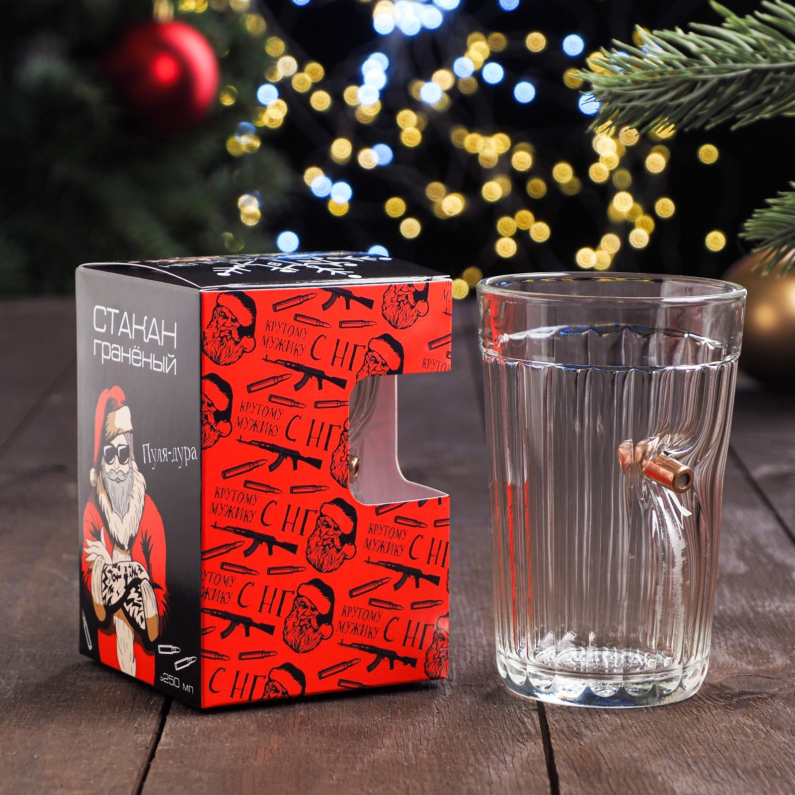 Гранёный стакан с пулей "новый год", 250 мл