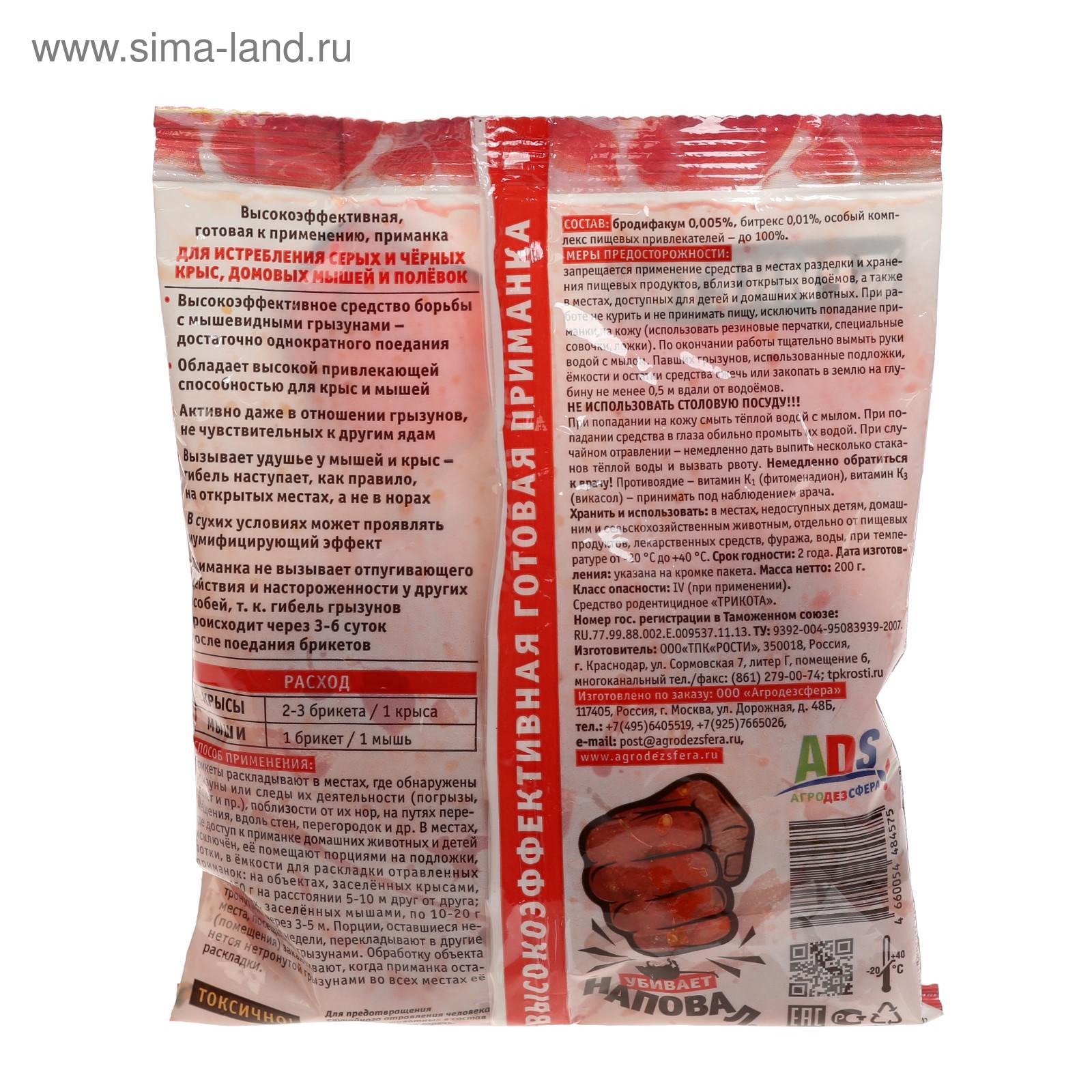 Тесто-брикеты от крыс и мышей "наповал" со вкусом копченого мяса, 200г