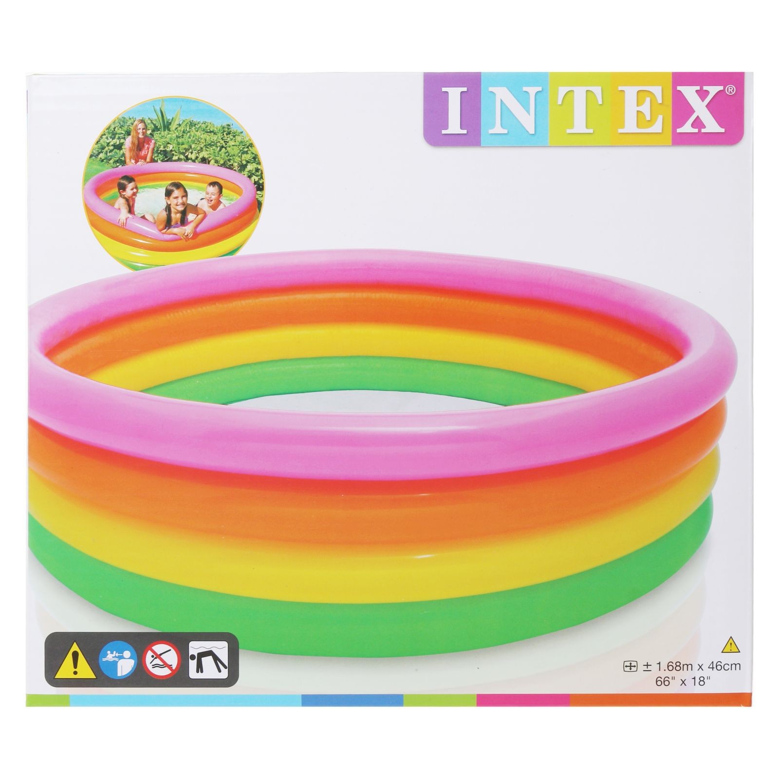 Бассейн надувной «радуга», 168 х 46 см, от 3 лет, 56441np intex. Надувной бассейн – это прекрасный яркий детский бассейн, который напоминает расцветкой радугу. Безопасен в использовании, доставит вашим детям множество радости. Детский бассейн имеет мягкие яркие надувные бортики, они не только добавят комфорта, но и уберегут вашего ребенка от травм. Чтобы дети не скучали, можете добавить в бассейн немного надувных игрушек. Характеристики: ненадувное дно. Объем: 780 л. Форма: Круглая Вид бассейна: Надувной Диаметр, см: 168 Длина, см: 168 Ширина, см: 168 Высота, см: 46 Возраст: От 3 лет Объём, л: 780 Материал: ПВХ Серия: Без серии Надувное дно: Нет : 0 Товар Каспи: Бассейны Тип: Бассейны  развернуть описание ▼