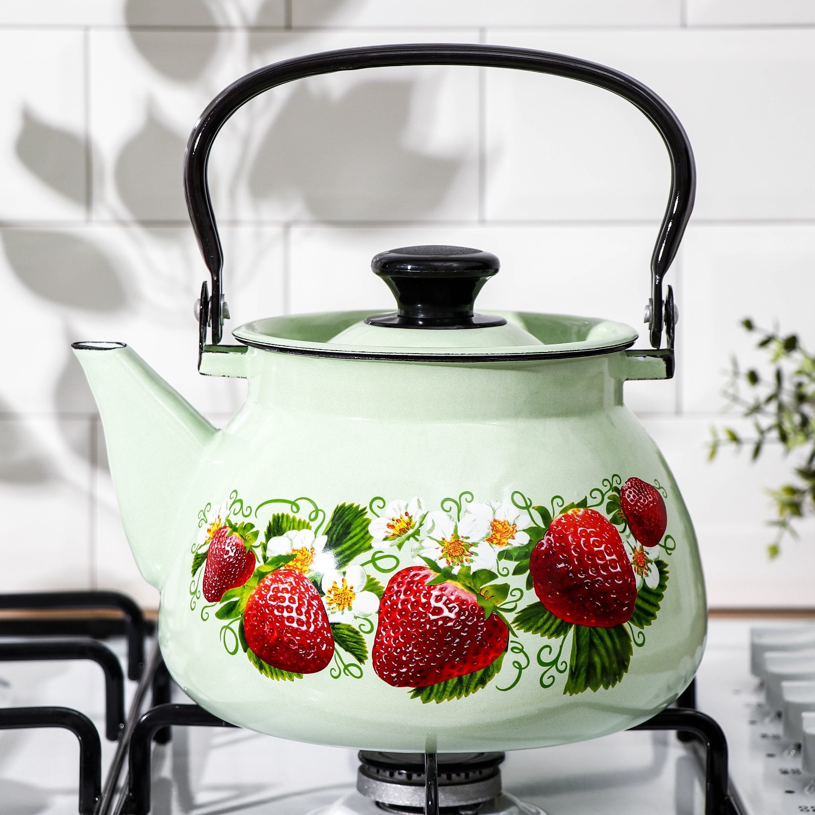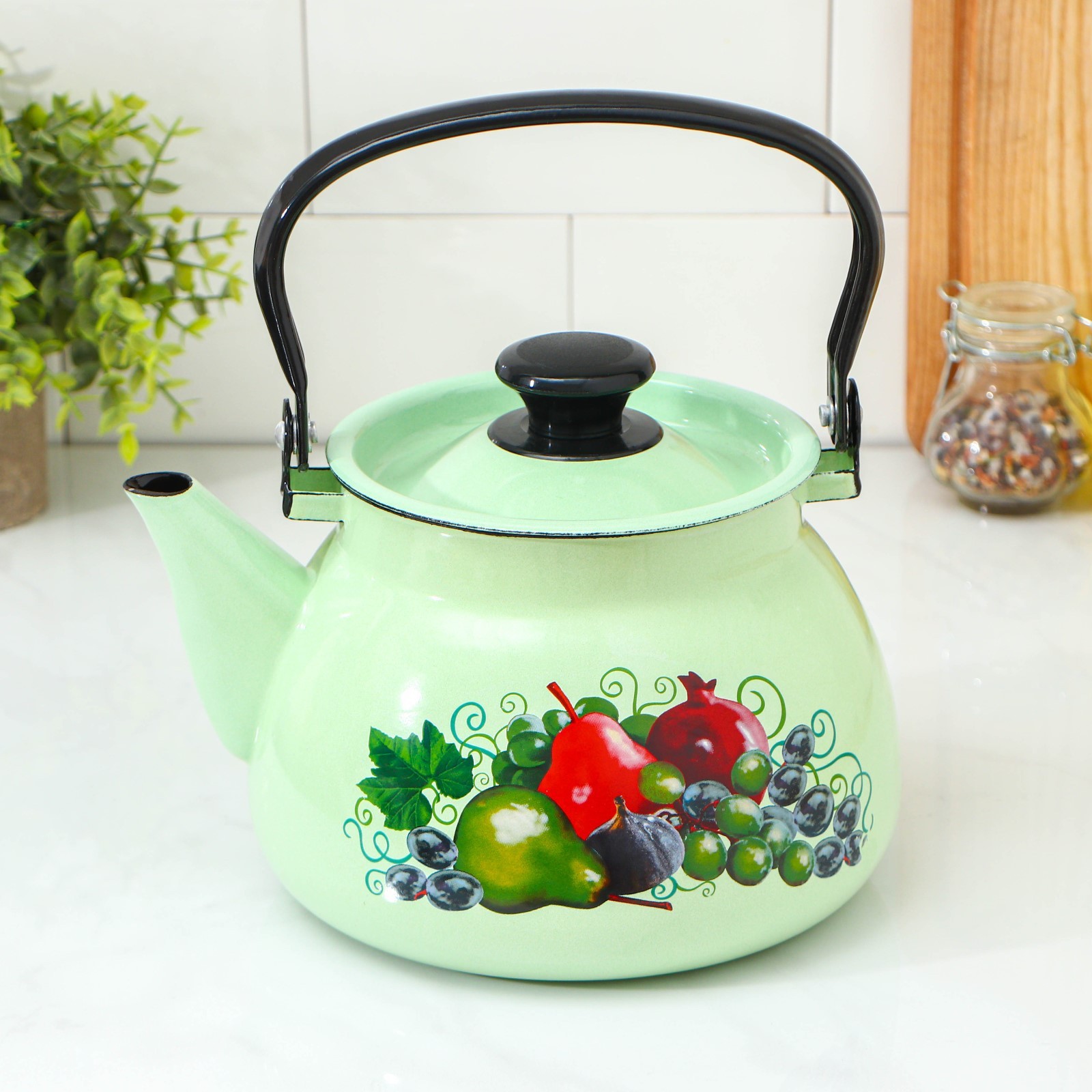Чайник сферический, 3 л, индукция, деколь микс, цвет салатовый