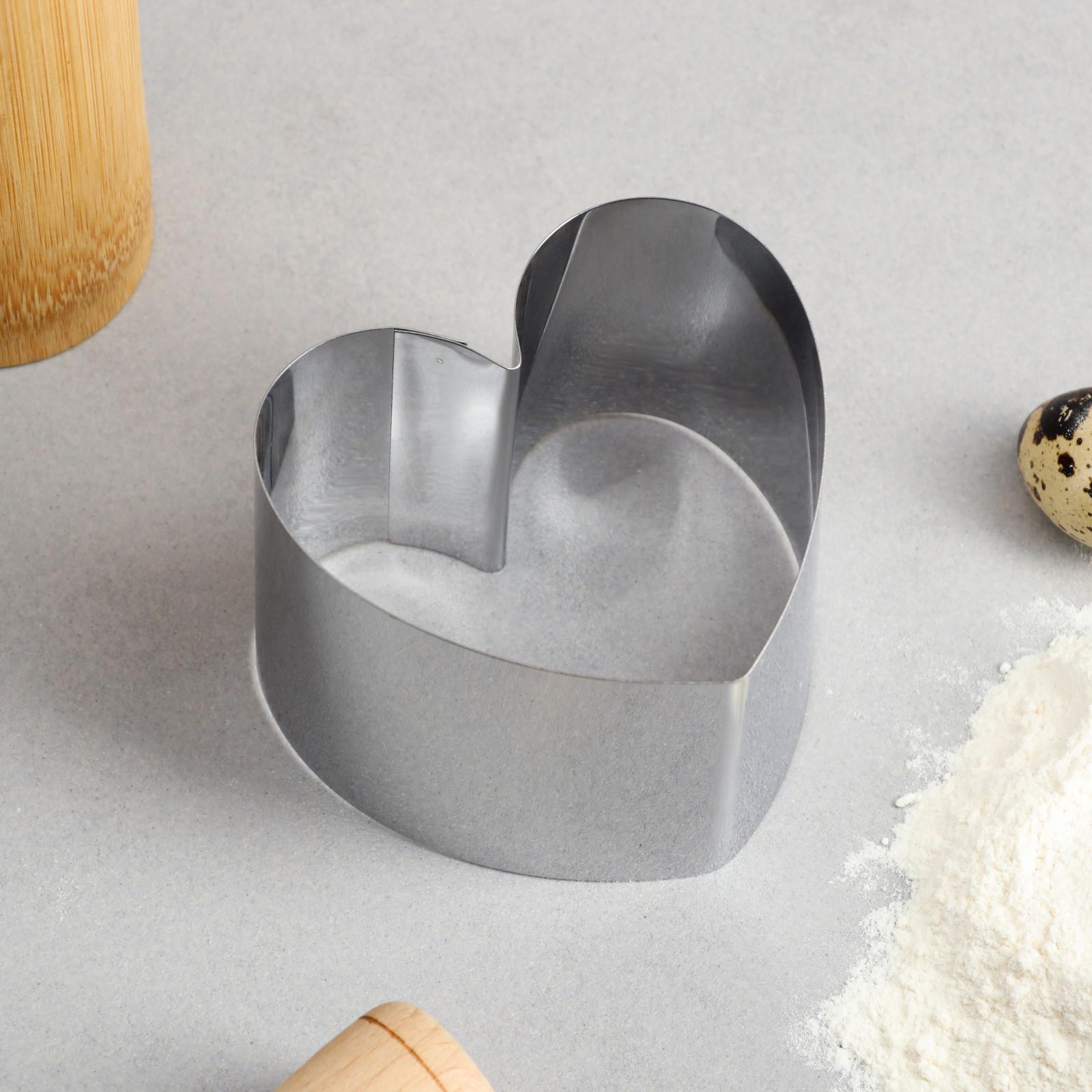 Форма для выпечки и выкладки "сердце", h-6,5 см, 8 х 8 см. Форма для выпечки TAS-PROM идеально подойдет для приготовления различных блюд, таких как кексы, бисквиты, чизкейки и многое другое. Преимущества:изготовлена из высококачественной нержавеющей стали;быстрое распределение тепла;стойкость к запахам;простота мытья. Примечание:Не рекомендуется использовать в ПММ. Цвет: Серебристый Форма: Сердце Фасовка, шт.: 1 Количество ячеек: 1 Крышка: Нет Материал: Металл Тип покрытия: Без покрытия Ячейки: Нет Тип формы: Для коржей Разъёмная форма: Нет Температурное ограничение: Нет Можно мыть в посудомоечной машине: Нет Форма: Сердце  развернуть описание ▼