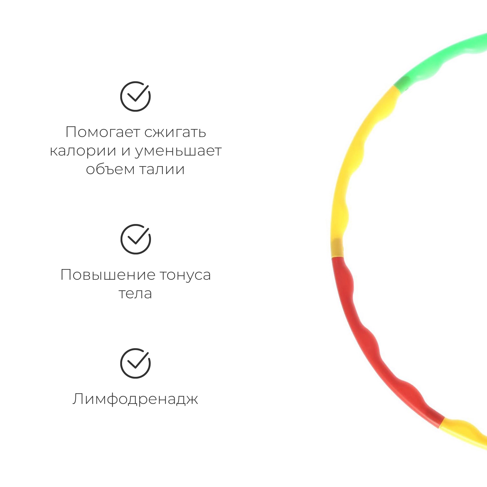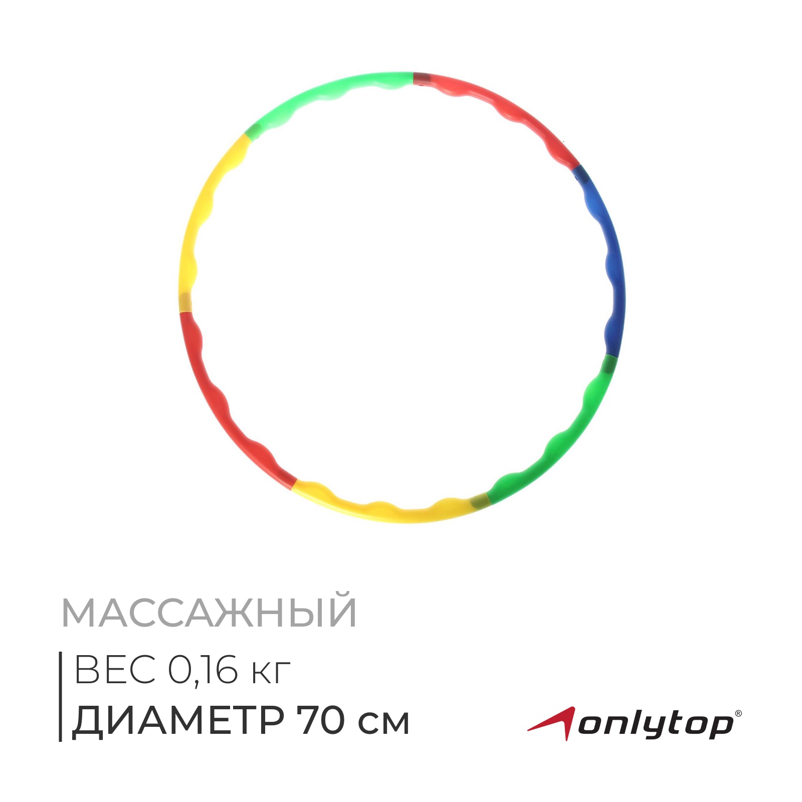Обруч разборный onlytop, d=70 см, толщина 2 см, цвета микс. Иметь красивую, подтянутую фигуру и чувствовать себя превосходно гораздо проще, чем вы думаете! Обруч - это отличный тренажер, который поможет Вам поддержать тело и мышцы в тонусе, улучшить работу дыхательной и сердечно-сосудистой систем, уменьшить массу тела. Преимущества работы с обручем: Подъем эмоционального уровня и укрепление силы духа. Проведенные исследования доказали, что кручение обруча вызывает массу положительных эмоций и приносит огромное удовольствие. Повышение обшей гибкости тела. За счет вращательных движений совершаемых весовым обручем, позвоночник становится более гибким. Вы можете решить многие “поверхностные” проблемы со спиной и избавиться от травм. Повышение тонуса тела. В процессе кручения обруча задействовано большое количество крупных мышечных групп, например таких как: бедра, ягодицы, живот, ноги, колени. Лимфодренаж. При постоянном кручении обруча у Вас улучшается кровообращение - это происходит вследствие непрерывного движения всего тела. Это отличный вид кардиотренировок, который помогает: строить мышечную массу, снизить кровяное давление и является отличной профилактикой инсультов и инфарктов. Обруч также оказывает расслабляющее и успокаивающее воздействие на организм, в результате чего снижается уровень стресса. Цвет: МИКС Диаметр, см: 70 Утяжелённый: Нет Вид: Обруч  развернуть описание ▼