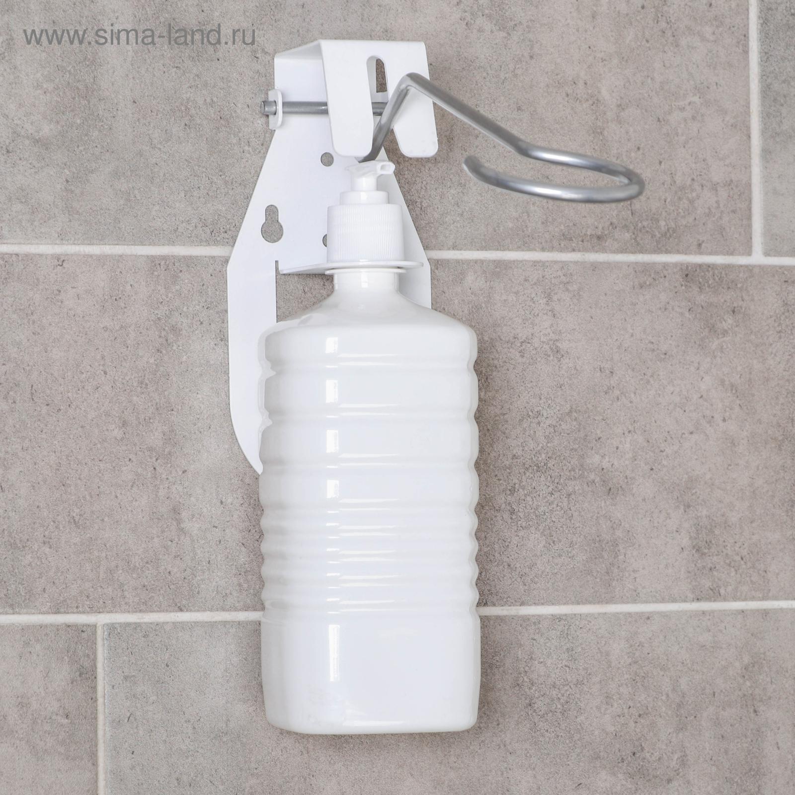 Дозатор для антисептика локтевой, 1 л, с держателем, цвет белый