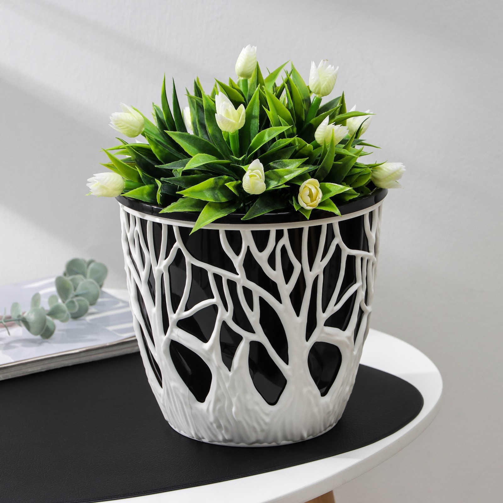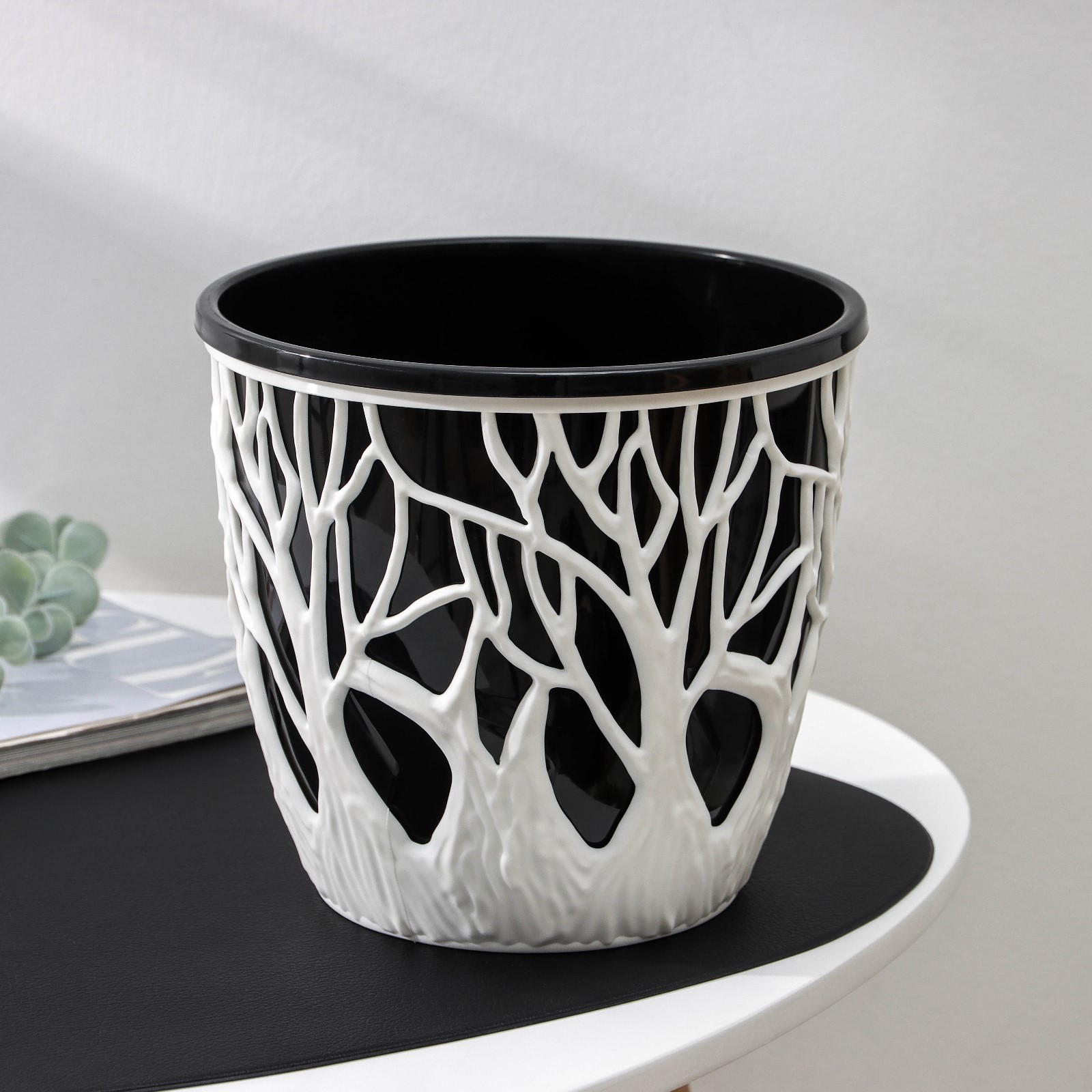 Кашпо для цветов со вставкой «форест», 3 л, бело-чёрное