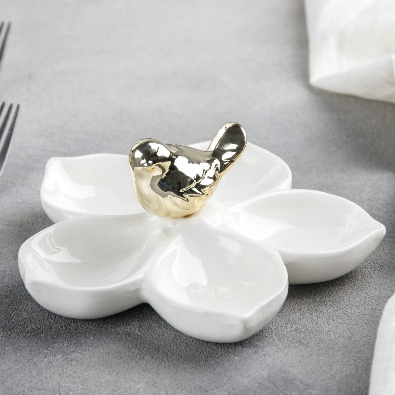 Менажница керамическая 5 ячеек Magistro «голубка», 15,5x6,5, цвет белый с золотом