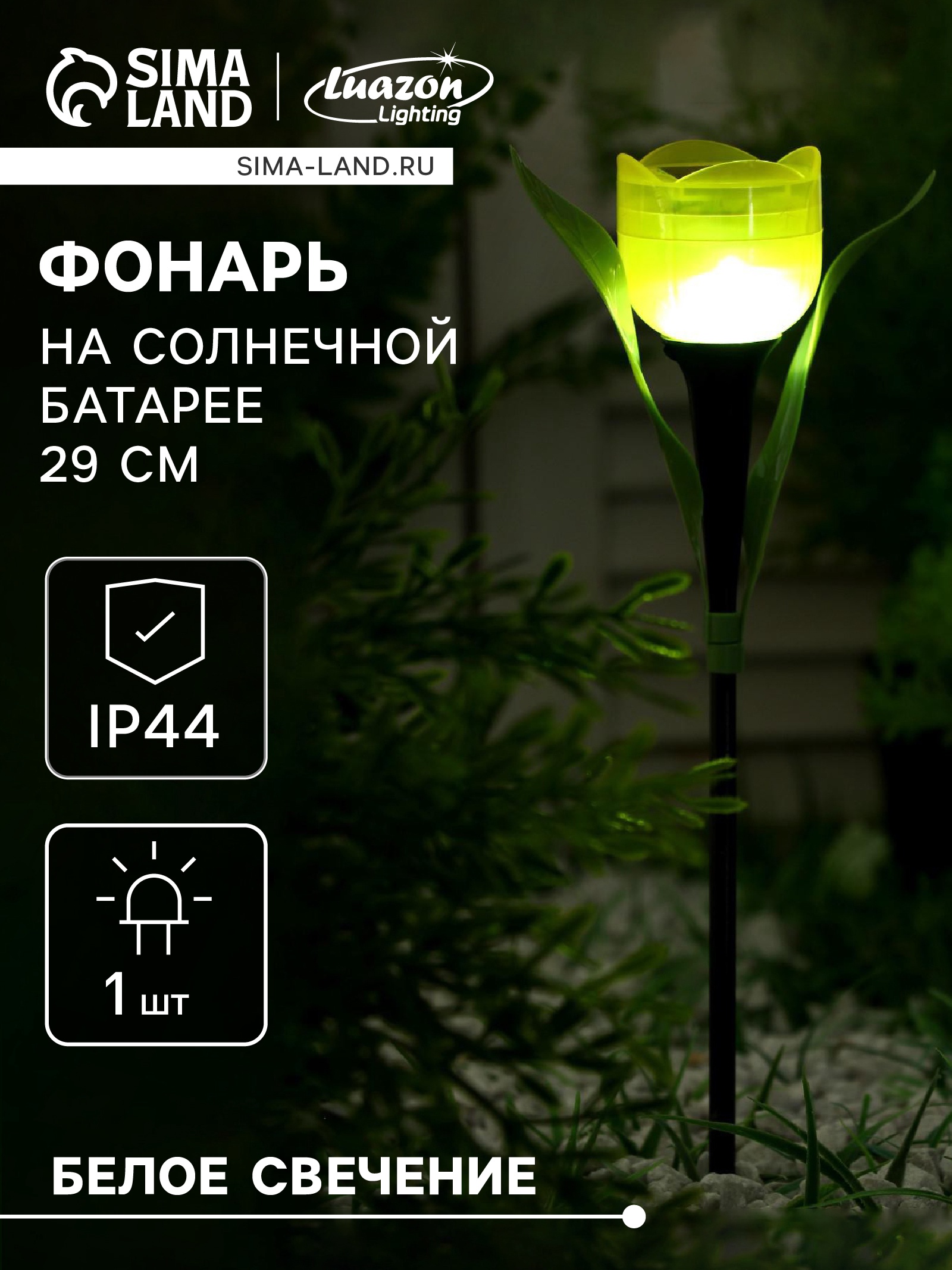 Садовый светильник «тюльпан жёлтый», уличный, на солнечной батарее, 5 29 4 см, 1 led, свечение белое. Цвет свечения:Белый|Количество ламп:1|Цоколь:Встроенные LED|Высота, см:29|Гарантийный срок, мес.:6|Степень защиты:IP44|Материал основания:Пластик|Цвет корпуса:Чёрный|Цвет корпуса:Жёлтый|Температурный режим:от -10 до +35 °С|Страна:Китай  развернуть описание ▼