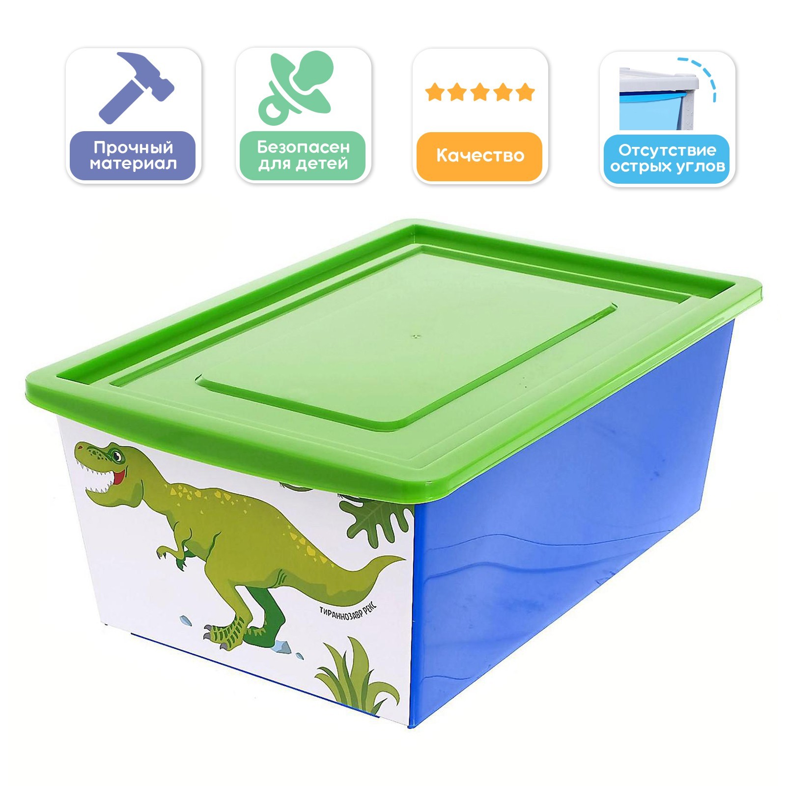 Ящик для игрушек, с крышкой, «дино. тирекс», объём 30 л, цвет синий