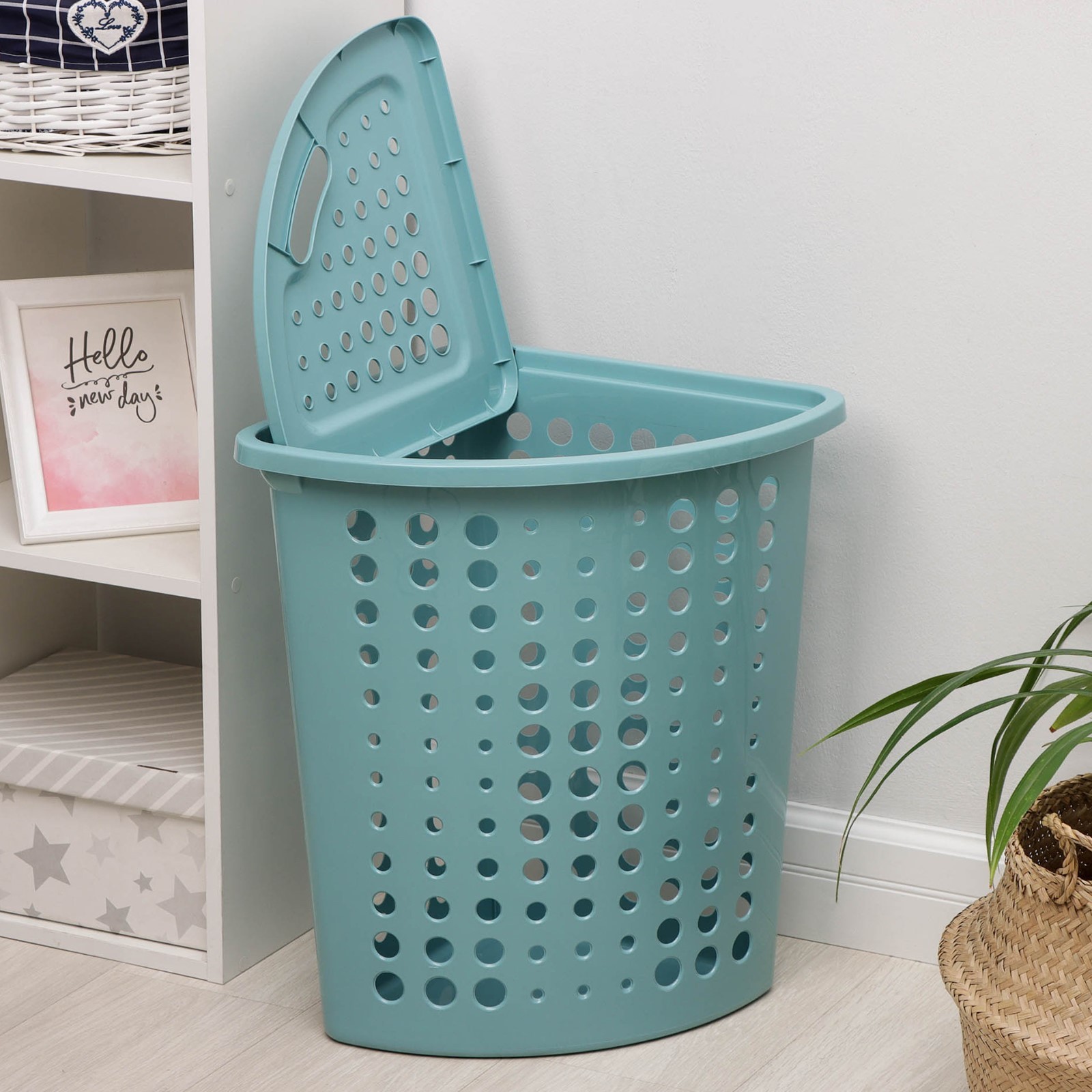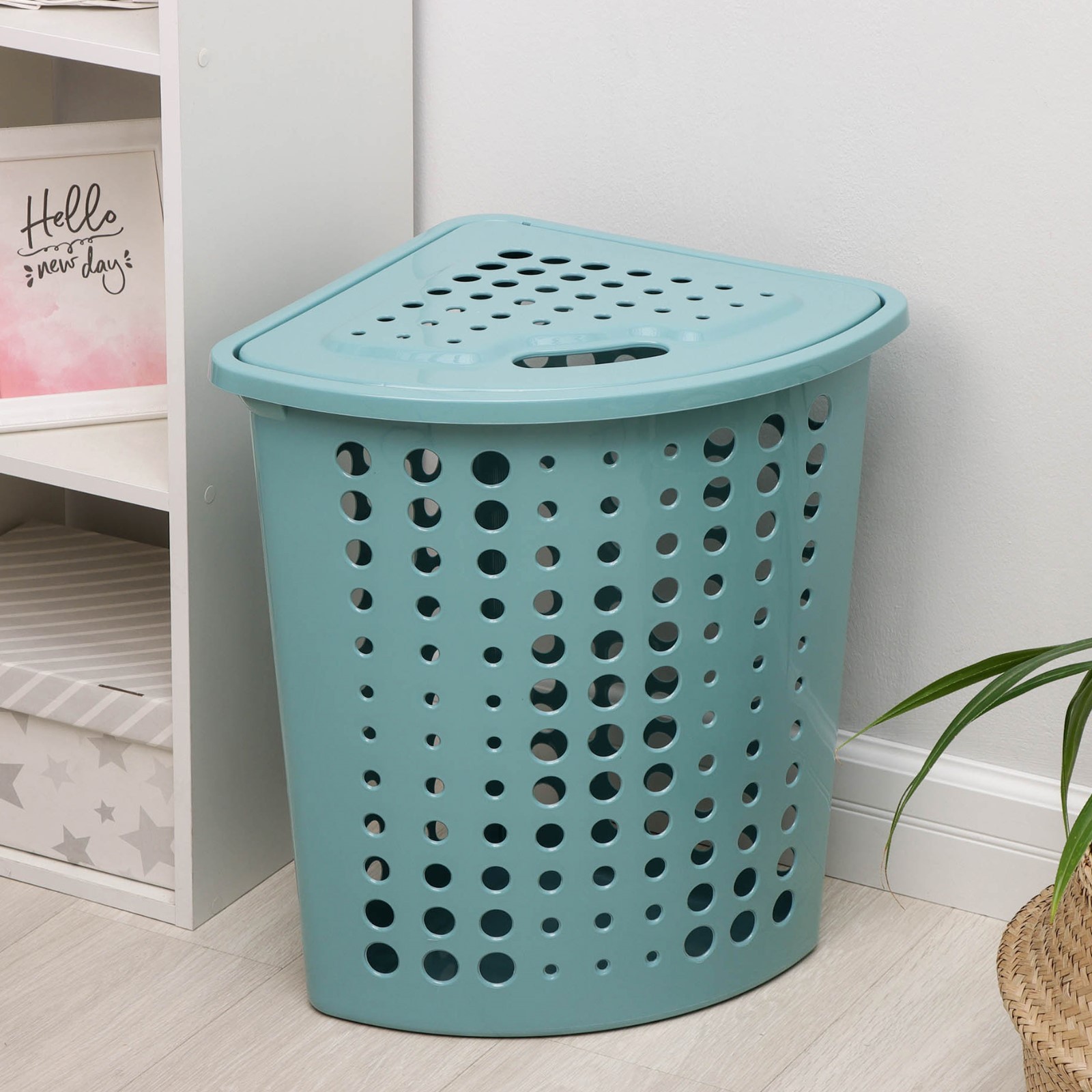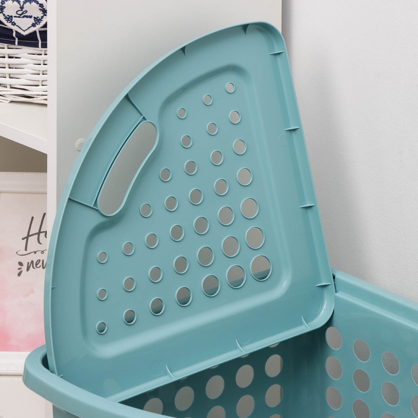Корзина для белья угловая с крышкой «молетта», 45 л, 40x51x53 см, цвет бирюзовый