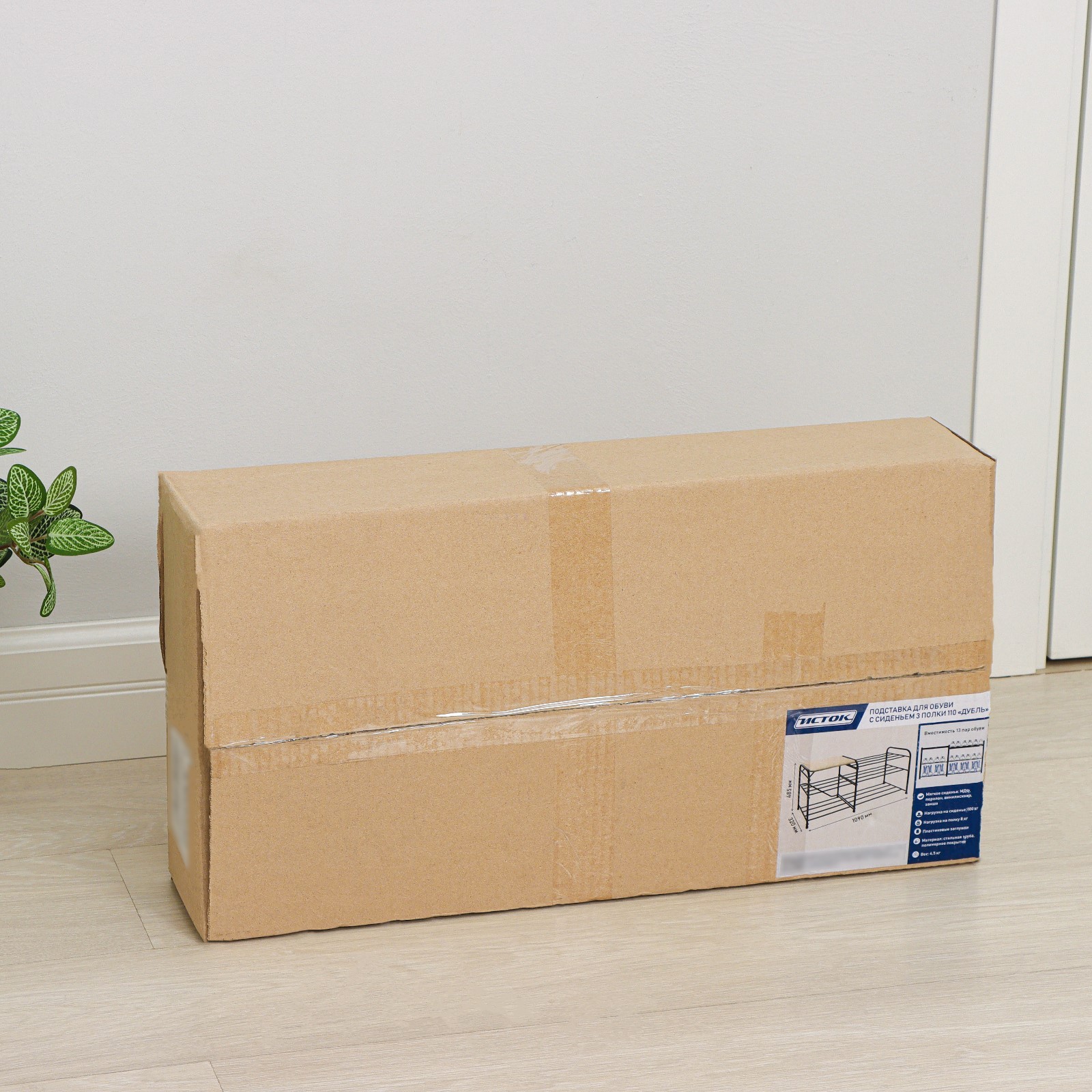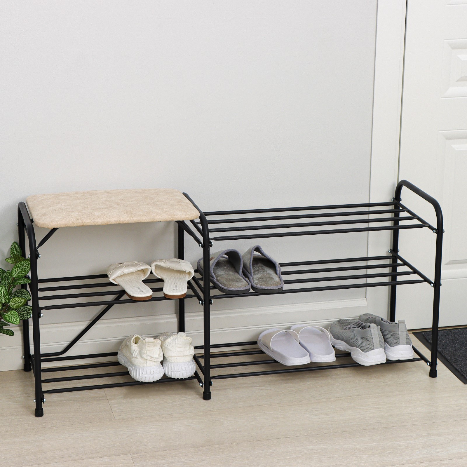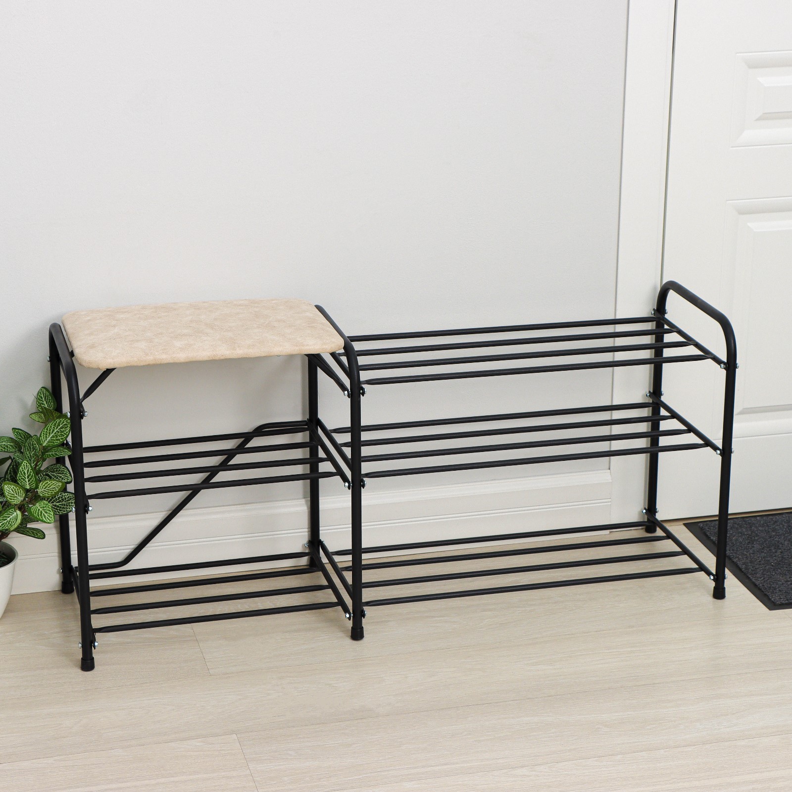 Подставка для обуви с сиденьем «дубль», 3 полки, замша, цвет чёрный