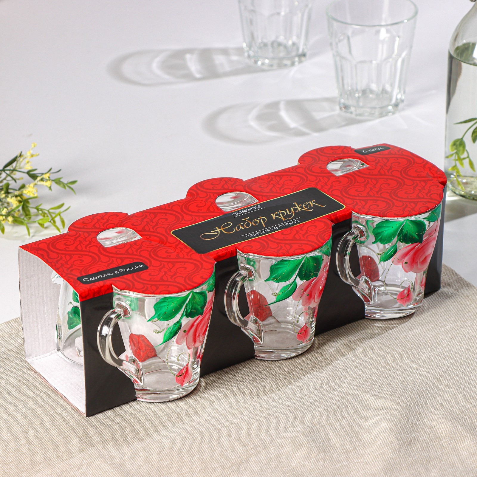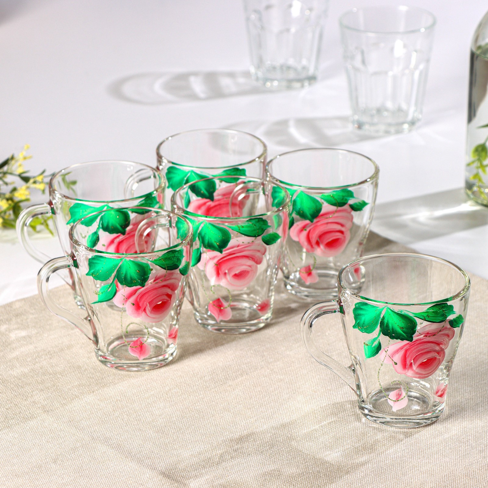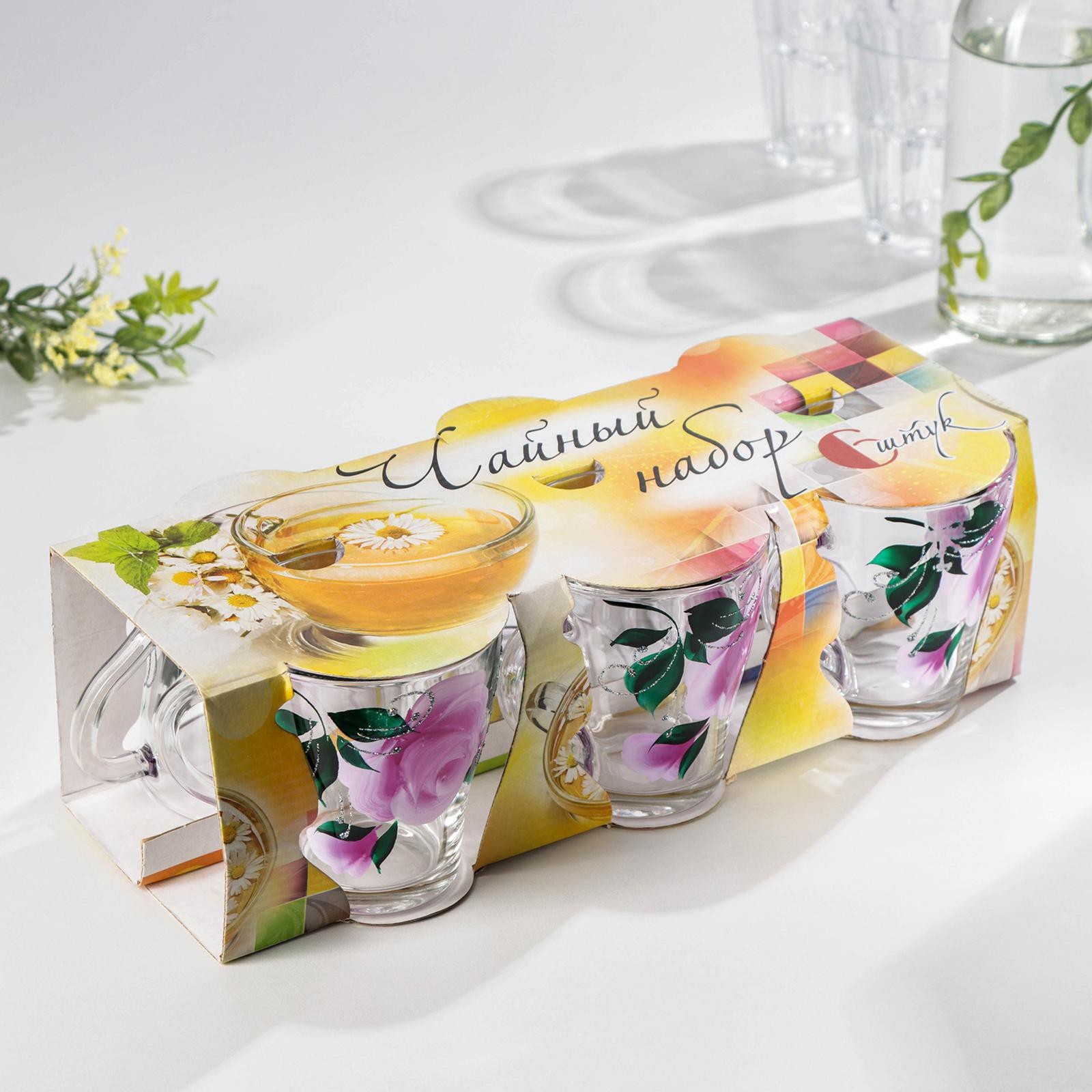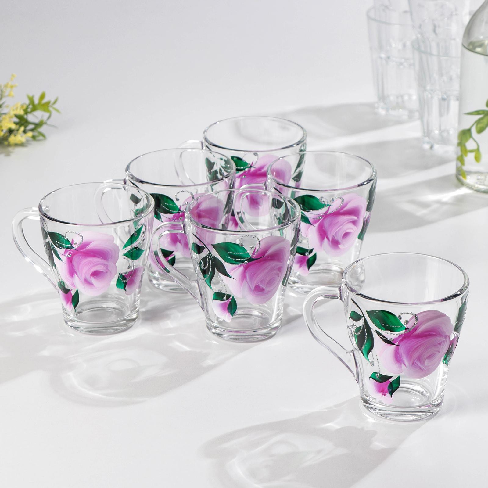Набор кружек «розовые лепестки», 250 мл, в подарочной упаковке, 6 шт, микс