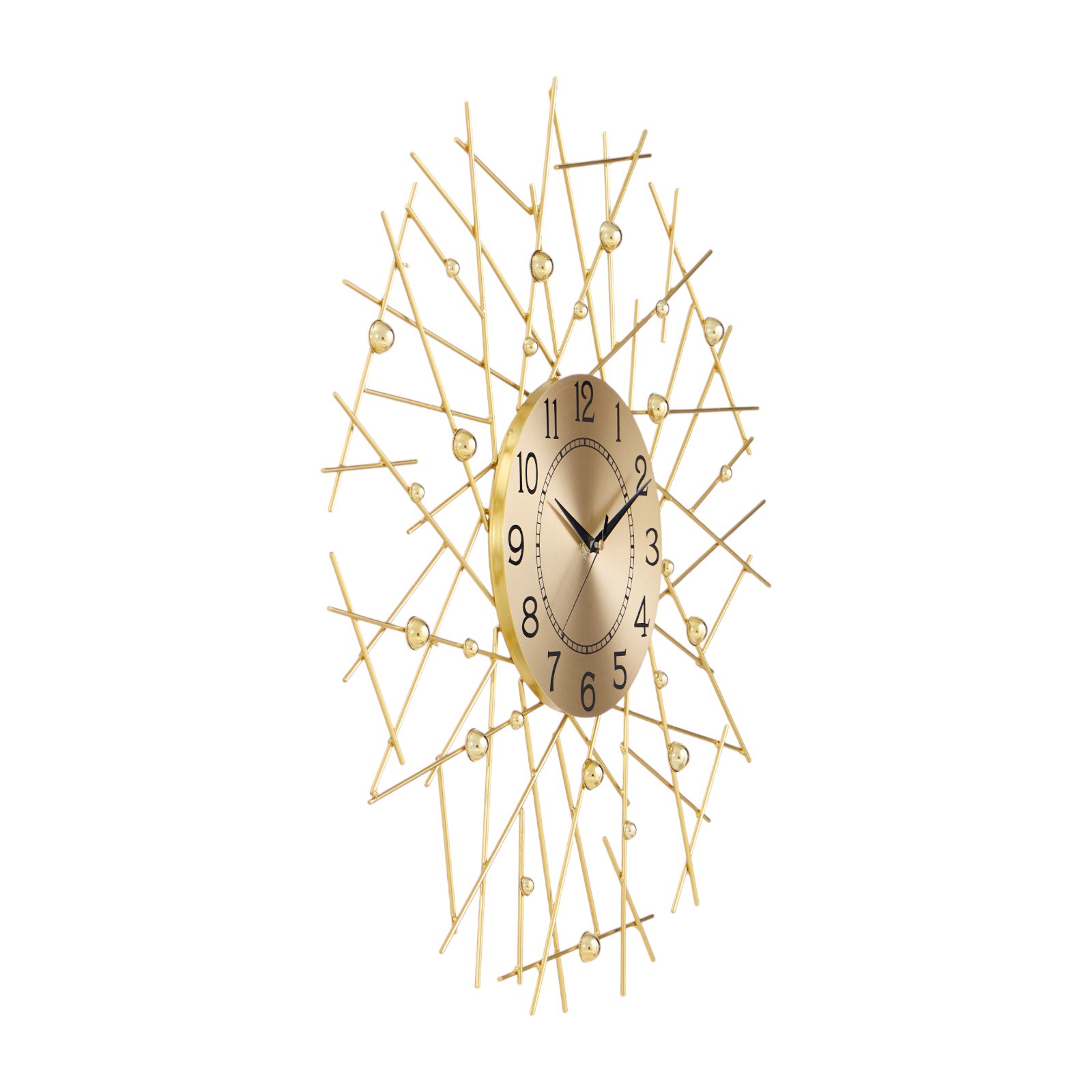 Часы настенные, серия: ажур, тези, d-60 см, циферблат 22 см. Часы настенные — функциональный элемент декора, который будет уместно смотреться в квартирах, офисах, приемных, вестибюлях, залах ожидания. Они станут отличным подарком на любой праздник. Корпус часов универсален, придаёт стиль и изысканность любой комнате. Часы оснащены кварцевым механизмом, что гарантирует длительный срок их службы. Особенности: Работают от батарейки типа АА (1 шт, в комплект не входит)Тип питания:От батареек|Форма:Круглая|Форма:Фигурная|Ширина, см:60|Высота, см:60|Тематика:Интерьер|Тип индикации:Арабские цифры|Тип механизма:Кварцевый|Цвет циферблата:Золотистый|Материал:Металл|Материал:Пластик|Работает от сети:Нет|Типоразмер батареек:AA (LR6)|Ход стрелок:Дискретный|Цвет корпуса:Золотистый|Бесшумные:Нет|Страна:Китай  развернуть описание ▼