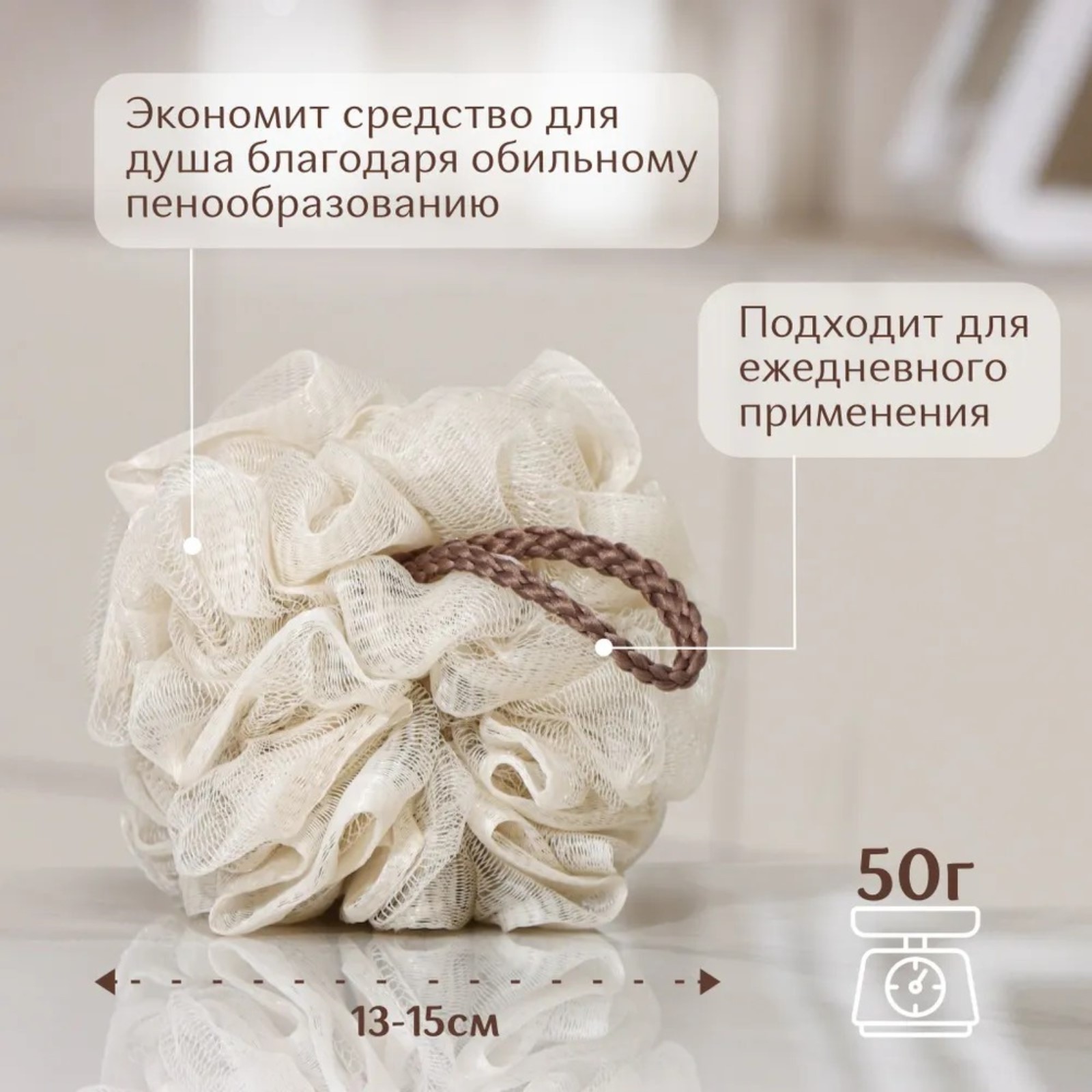 Мочалка для тела доляна «нежность», 50 гр, цвет микс