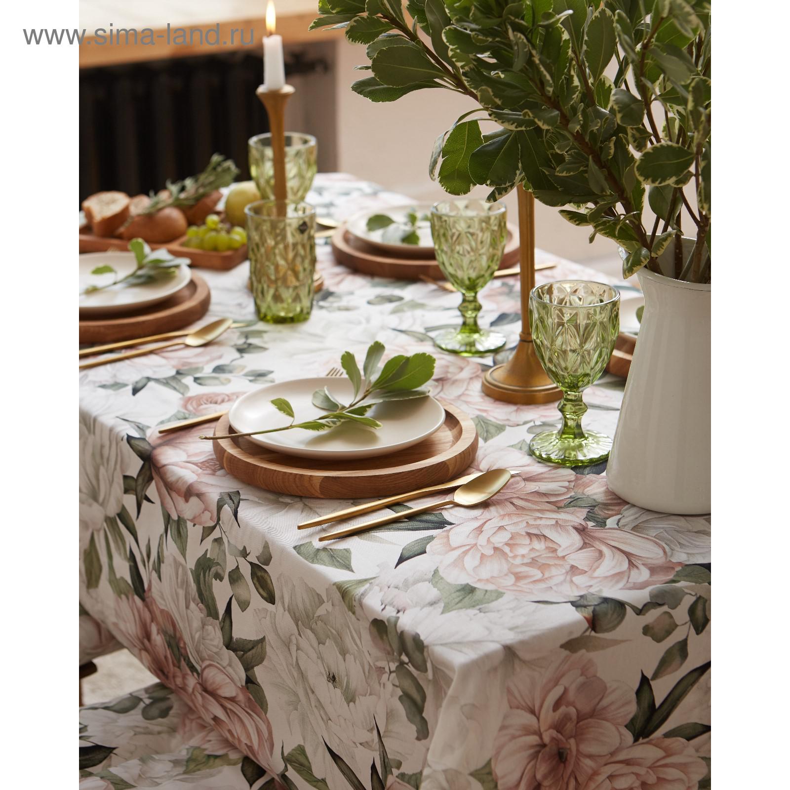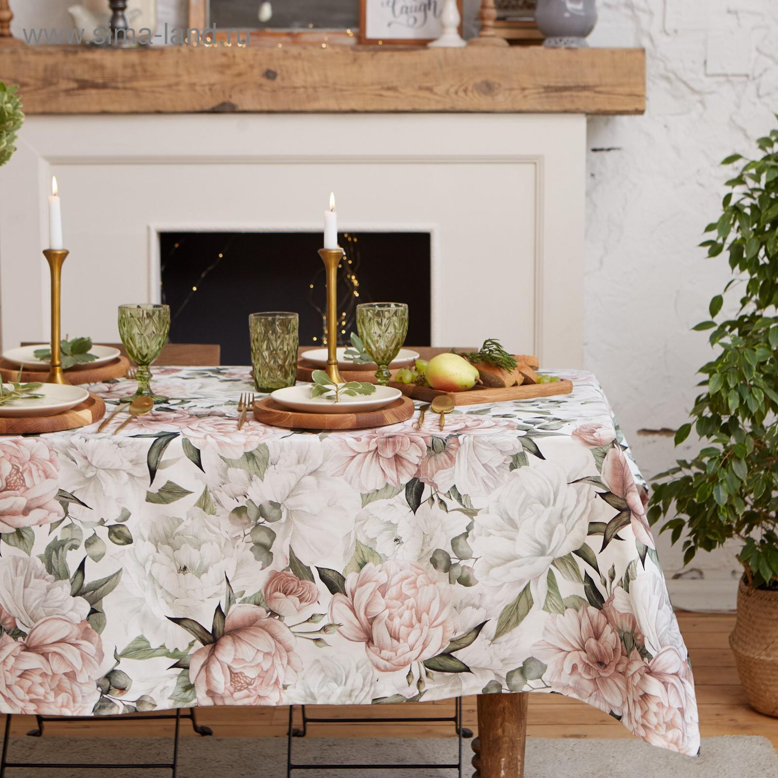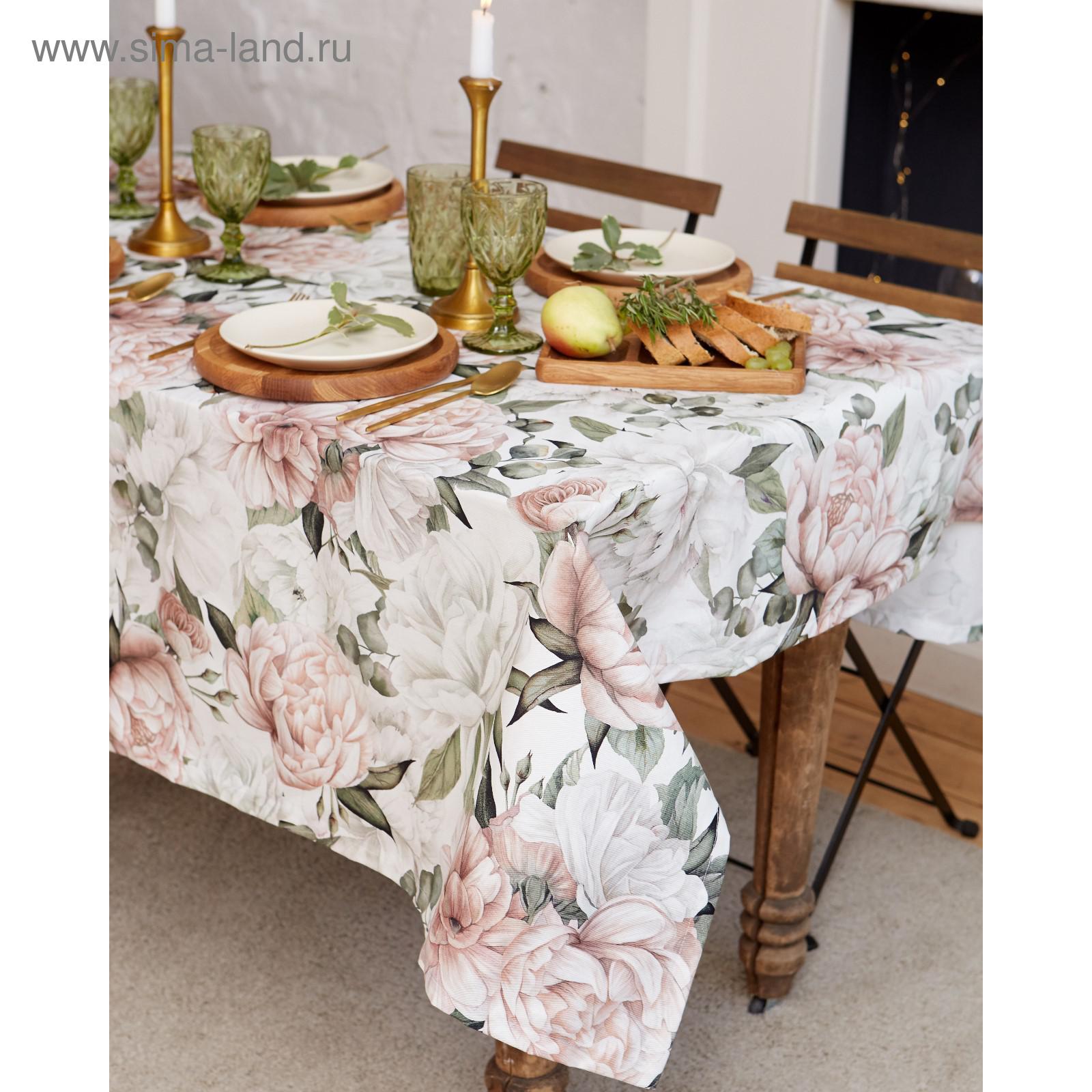 Скатерть этель "пионы" 149х180 см, 100% хлопок, саржа 190 г/м2