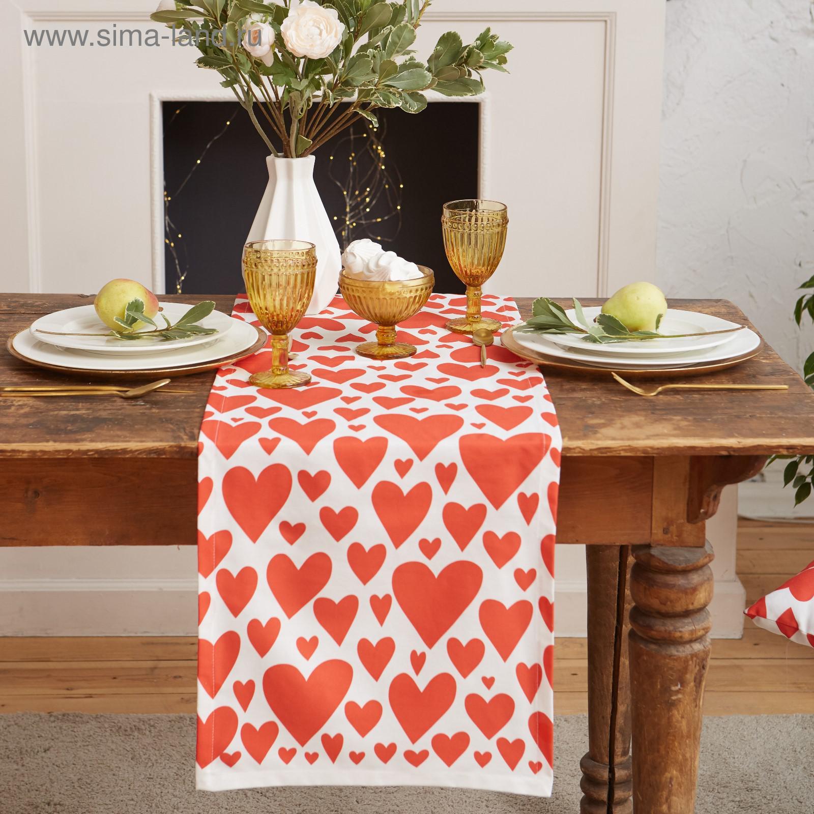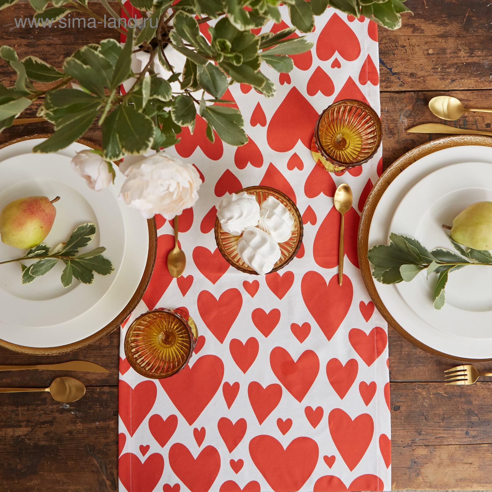 Дорожка на стол "этель" Red Hearts 40х149см, 100% хлопок, саржа 190 г/м2