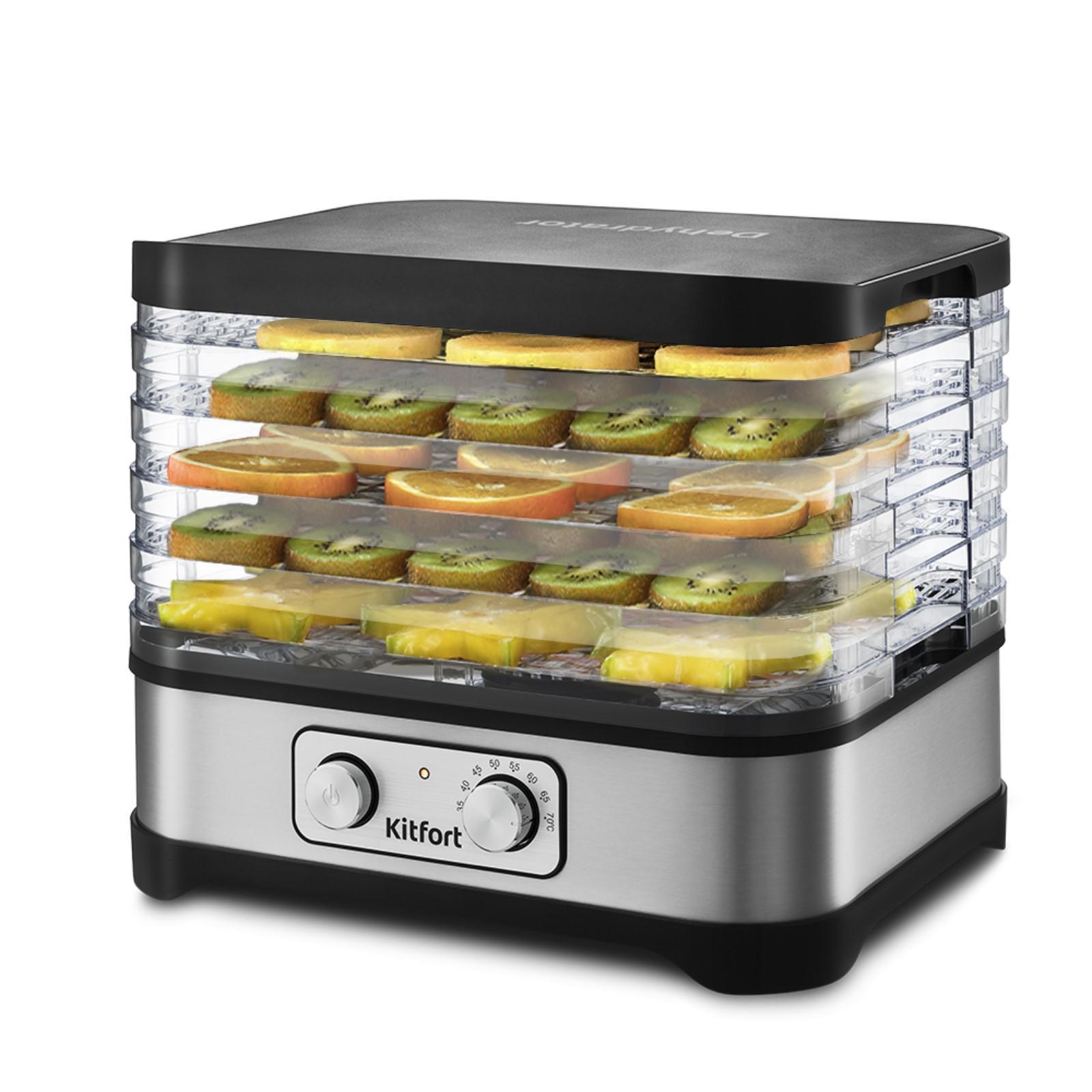 Сушилка для овощей и фруктов Kitfort Kt-1912, 250 вт, 5 ярусов, серебристая