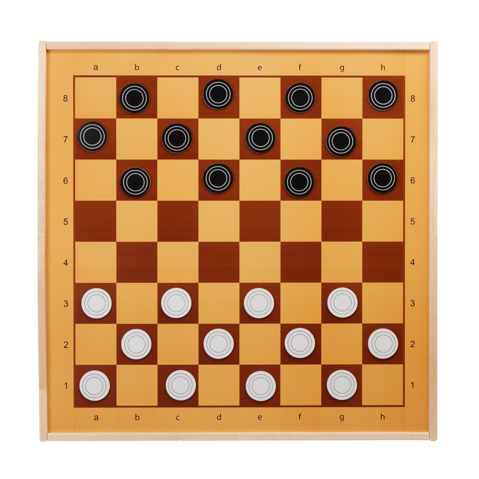 Шахматы и шашки магнитные, демонстрационные 73 х 73 х 3.5 см, король h-6.4 см. Демонстрационные шахматы магнитные имеют жесткую конструкцию и представляют собой доску, обрамленную деревянной рамкой размером 73 х 73 х 3. 5 см. Игровое поле для жесткости сделано двухслойным, с внутренней стороны лист ДВП, с лицевой - тонкий окрашенный металлический лист. На лицевой стороне доски нанесено игровое шахматное поле с размером клеток 7. 6 х 7. 6 см. Шахматные фигуры на магнитной основе надежно удерживаются на доске. Они сделаны из экологически безопасного мягкого полимера толщиной 4 мм, в зависимости от типа фигуры высота их может различаться от 55 до 64 мм, ширина до 7 см Набор шашек (диаметр – 5, 5 см, толщина – 4 мм) Размер, см: 73 х 73 Возраст: От 14 лет Лицензия: Нет Материал: Металл Количество игроков: 2 Вид: Шашки (доска + фигуры) Вид: Шахматы (доска + фигуры) Особенности: Магнитные Составляющие: Шашки Составляющие: Шахматы Температурное ограничение: Нет Материал шашек, шахмат: Пластик Материал игральной доски: Дерево  развернуть описание ▼